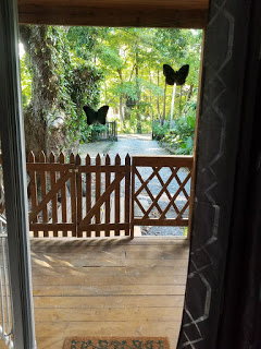 After trying my best to walk through the front door… and I have the bruised forehead to show for it…. we put some sticky butterflies on the glass.