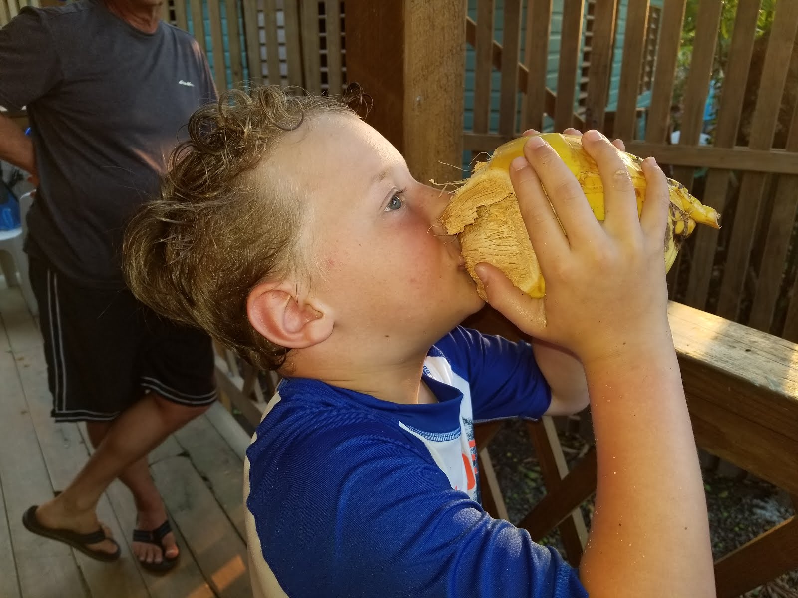 Our neighbour gave the kids coconuts and cacao. Not only did they have the coconut water and flesh, Daryl also made chocolate.