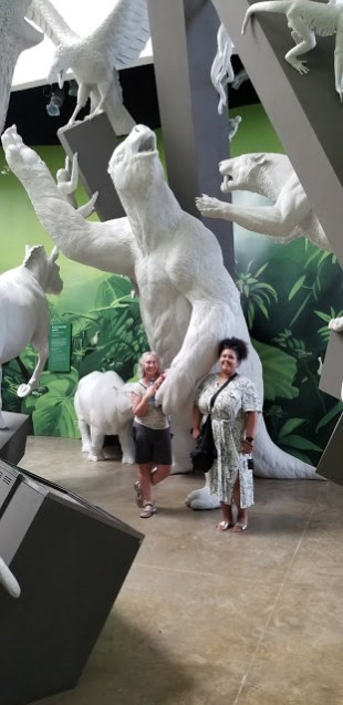 We went to the bio museum, it is really well done. The big white creatures are sloths….guess they have shrunk considerably over the years. And neither Daryl nor I will see those sunglasses ever again!!
