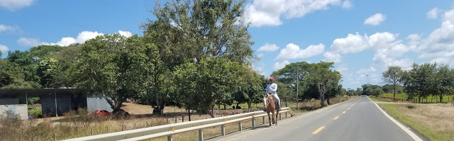 We went exploring the area around Pedasi, with the goal to end up in Playa Venao, a surf beach 30 km from Pedasi. We ended up driving 160 km through some of the most beautiful scenery imaginable. Lots of rolling hills and a road that went straight up, then straight down.