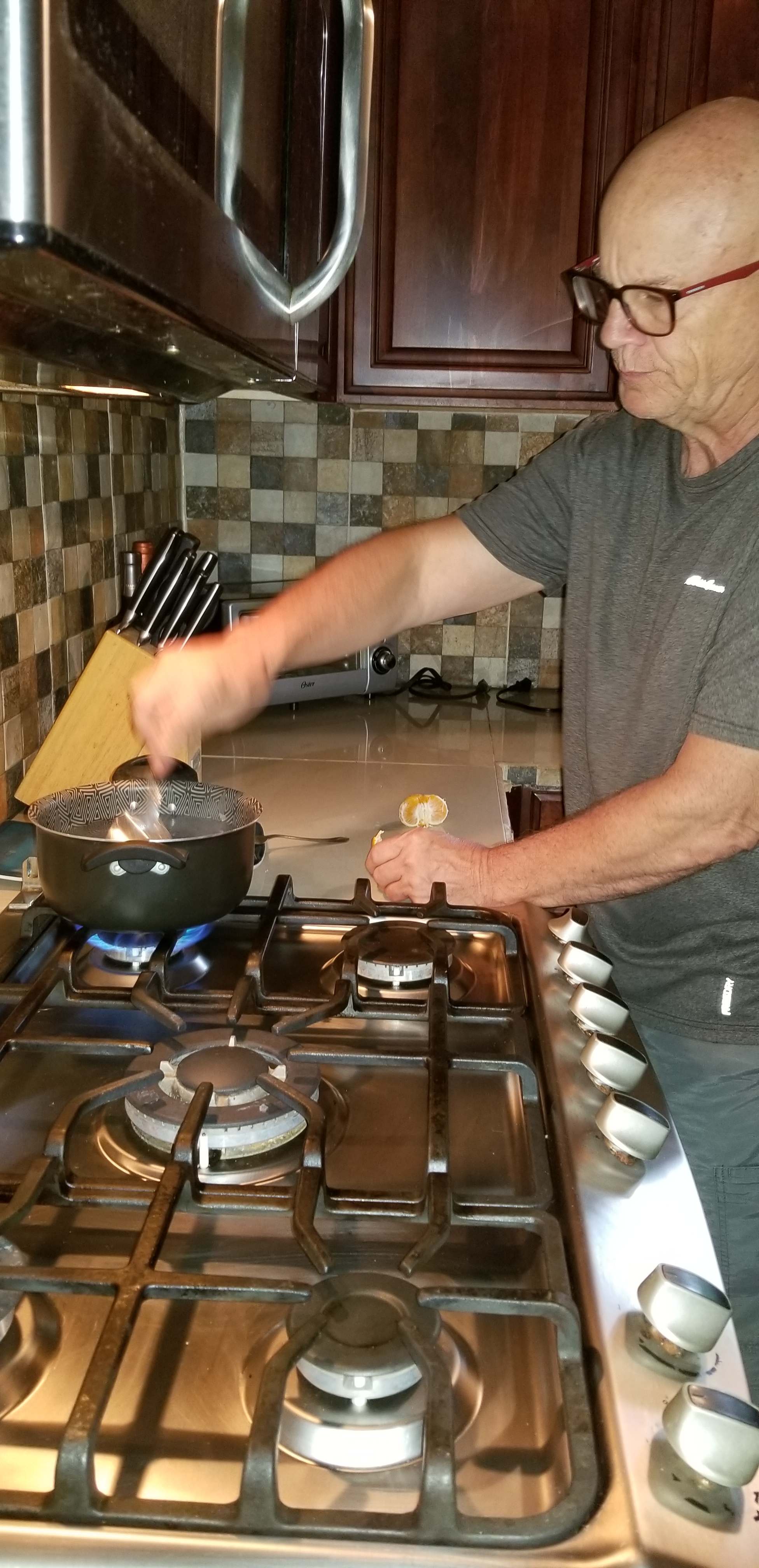 Next he added orange peel, a cinnamon stick and star anise.