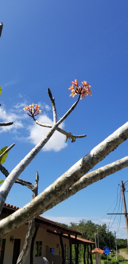 Outside our front door we have this tree with barely any leaves. Then one day it flowered.