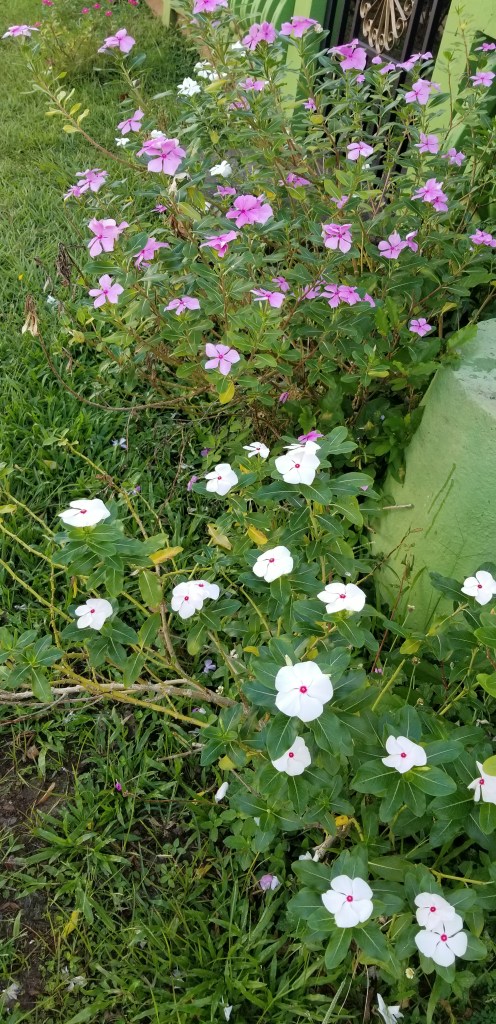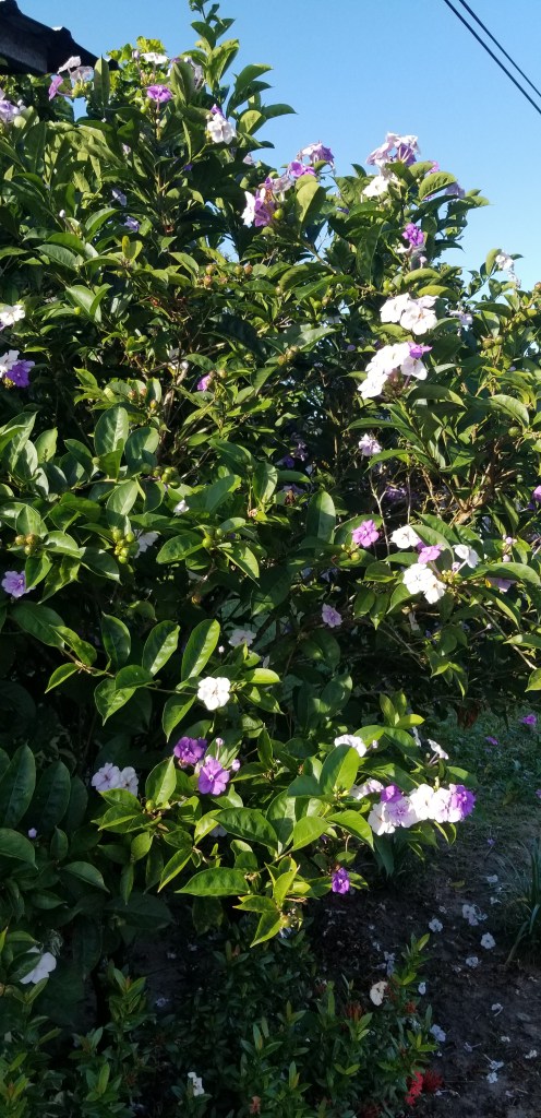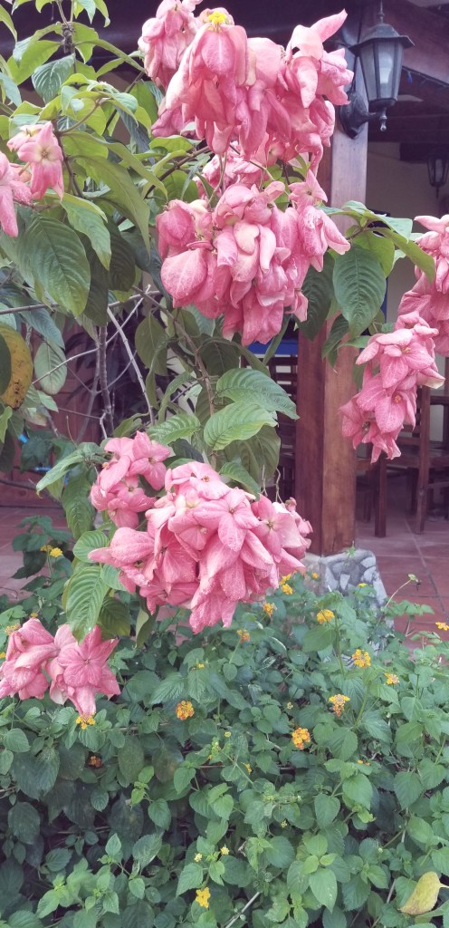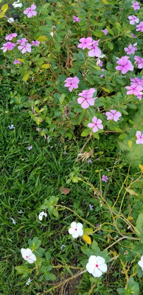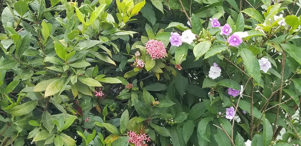 There are so many beautiful flowering plants and fruit trees providing splashes of color throughout the shades of green….loving it. And if you are able to identify, please let me know.