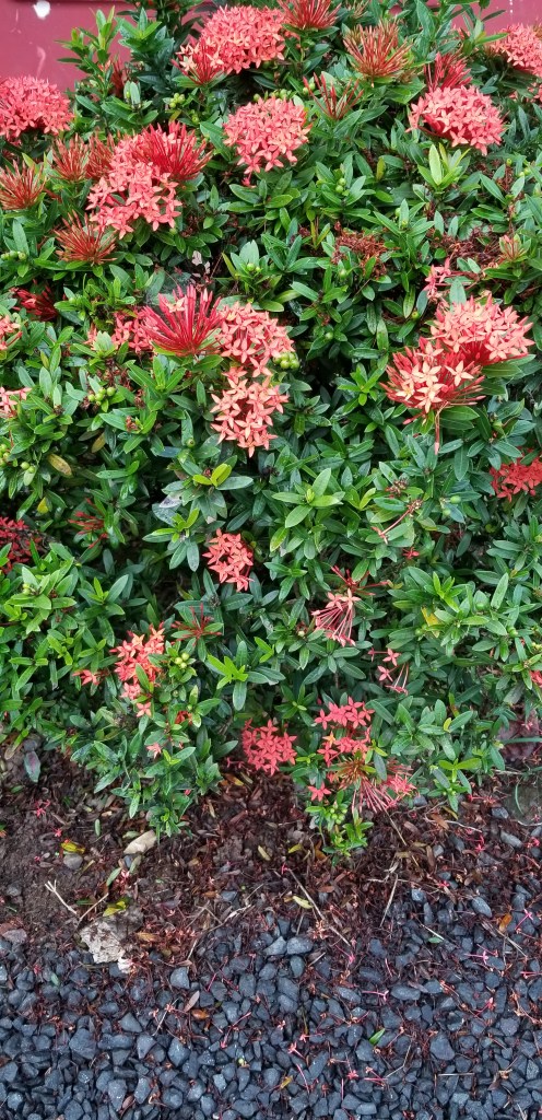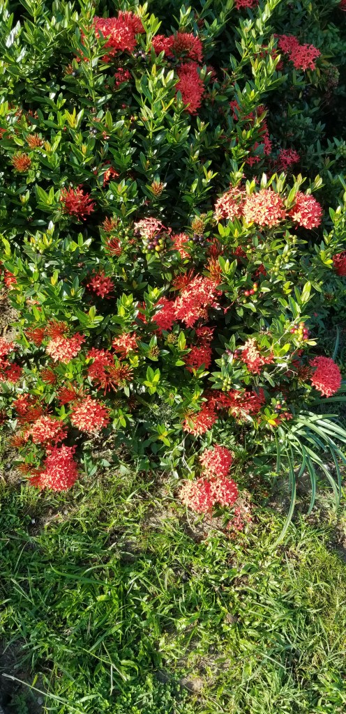 I have about a 7 or 8 minute walk to yoga. The pictures of most of these flowers and shrubs/trees have been taken on this short walk. There are so many shades of green and then the most brilliant splashes of color. Unfortunately I don’t know the plant names, maybe that will be my next project!!