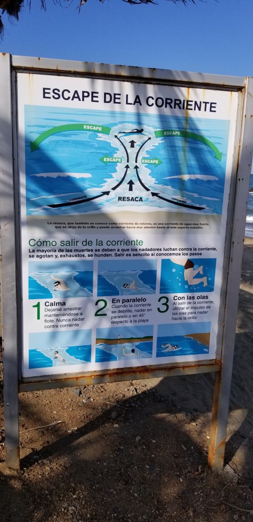 Playa El Toro…Bull Beach… is quite close to town, maybe a couple of kilometres. it is one of the more popular beaches, but a tad rocky. Quite windy when we were there and that kept me out of the water in conjunction with the picture about the crazy currents.