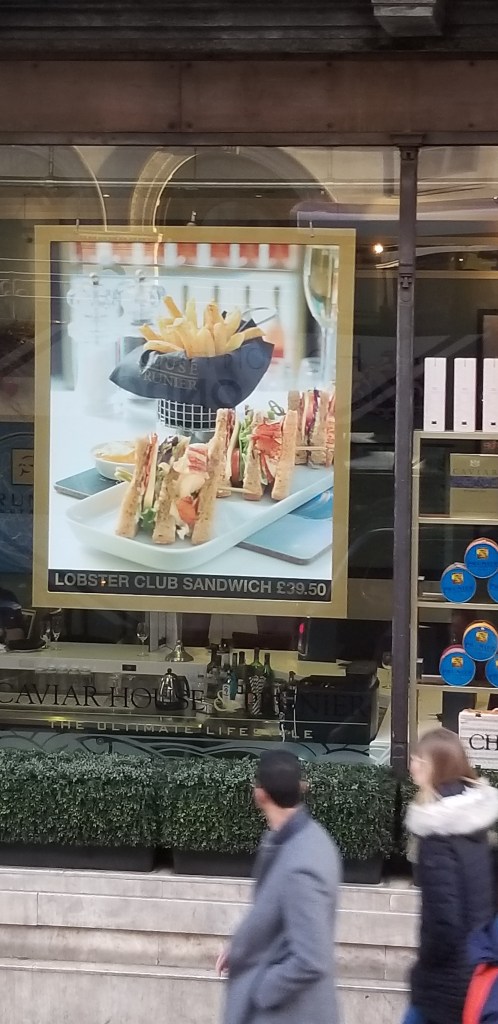 On our way to our next stop we passed The Ritz. So if you are in the mood for a light lunch, you can stop by for a lobster club sandwich. It does look good, just don’t look at the price.