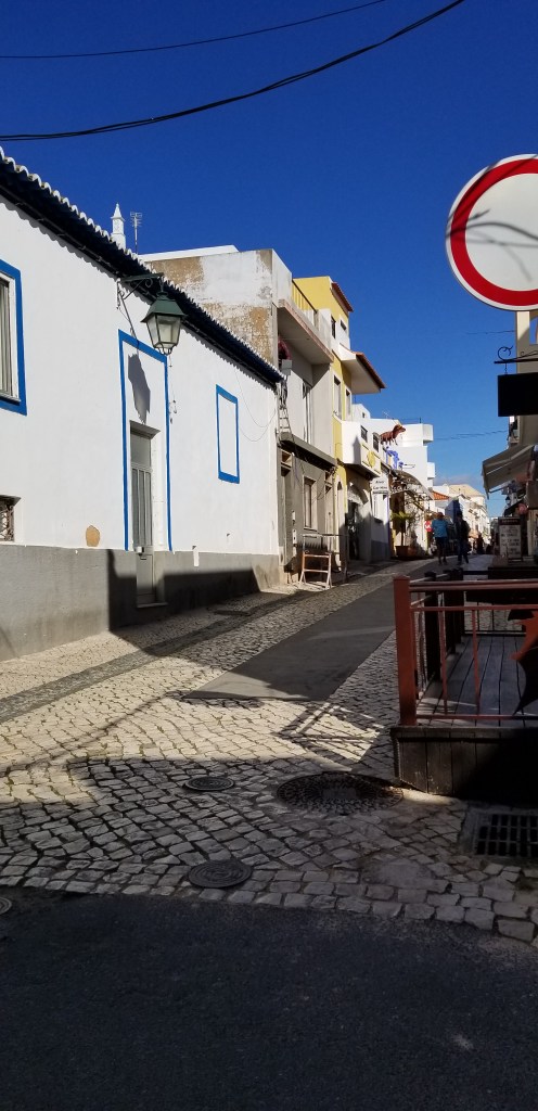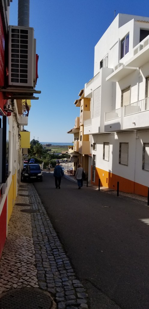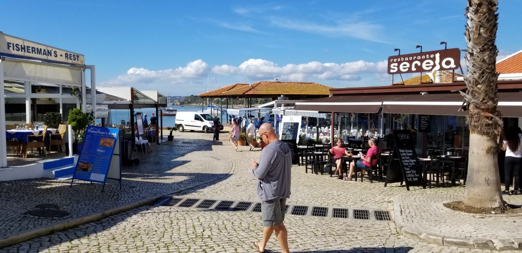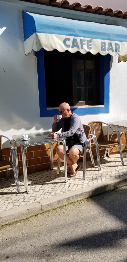 On Saturday morning we took the bus into the next town, Alvor, which is supposed to be one of the most famous fishing villages in the Algarve. It was about a 20 minute ride. First stop was for coffee at a little side walk cafe.