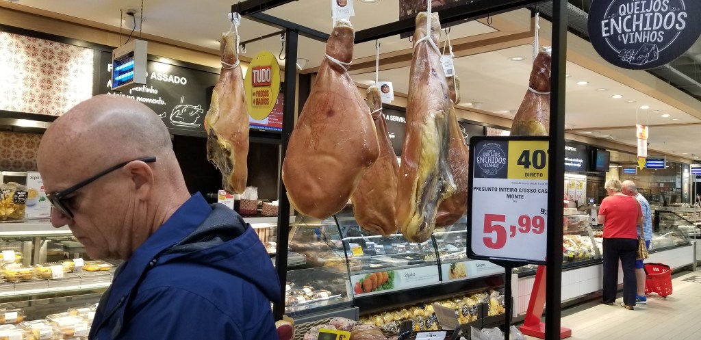 There are tons of wines from Portugal….full price range. We are about an hour from the airport. On arrival our driver was giving us practical information, including a list of the ‘good’ wines to buy. In anticipation of Heather and Mike coming, and the last day we were going to have a car for a while, we decided to stock up. Despite our best efforts we are having to leave some bottles behind. Our apartment has offered to store the wine until we come back, that is one way to age it!