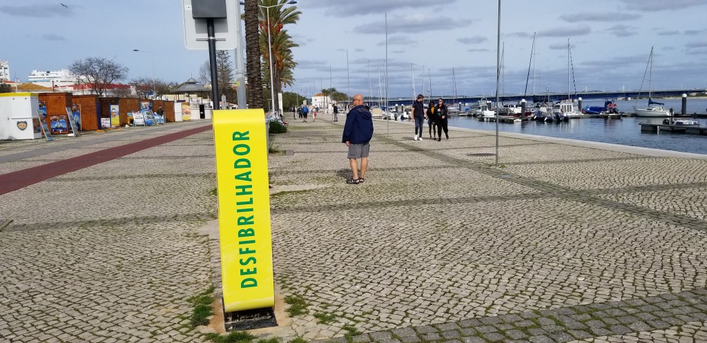 Most of the towns we have visited have defibrillators on the sidewalks.
