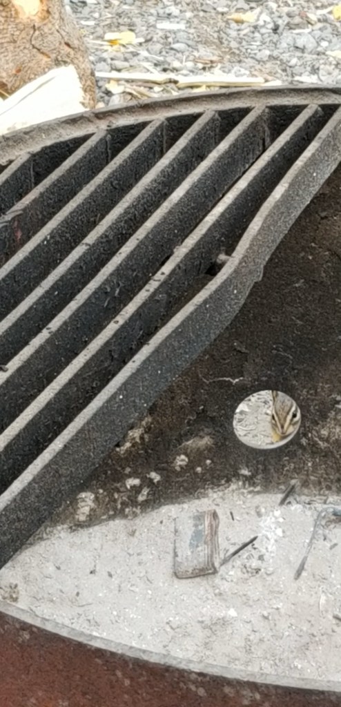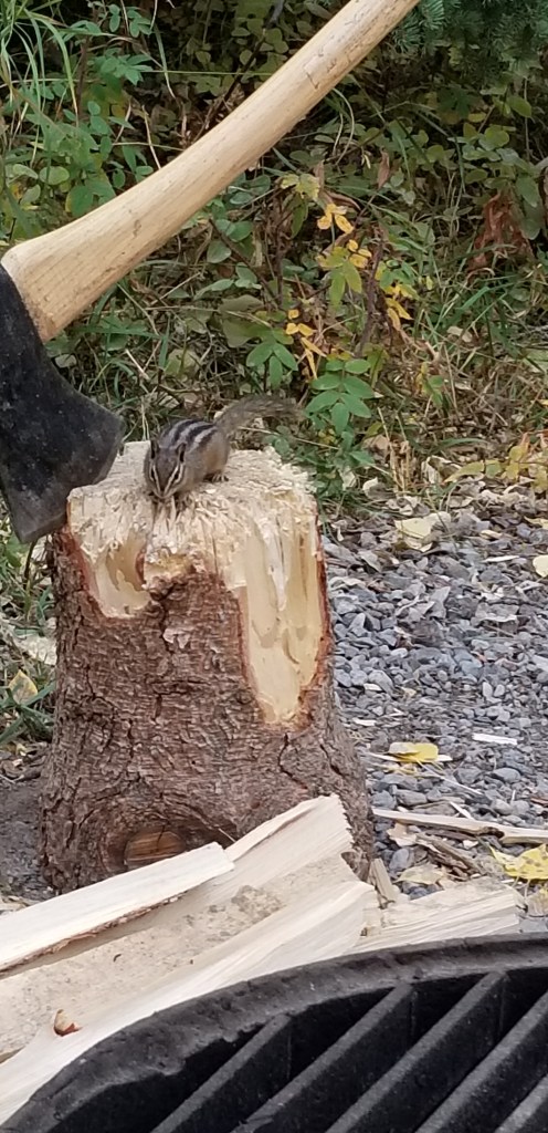 This little chipmunk was curious to see what we were doing….just cooking baby back ribs in the hot coals.