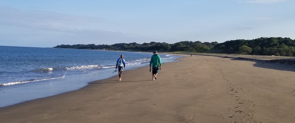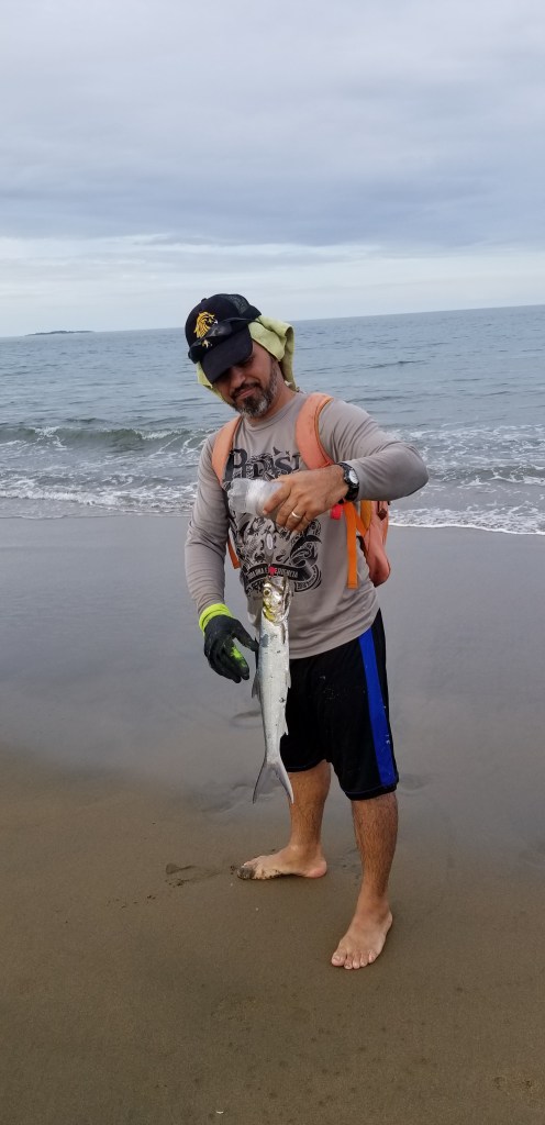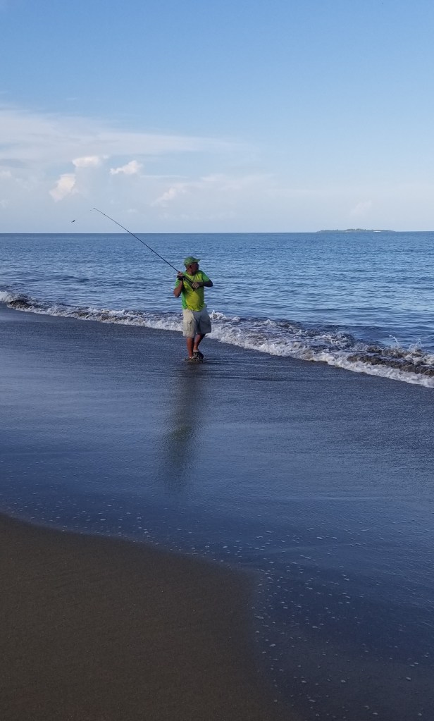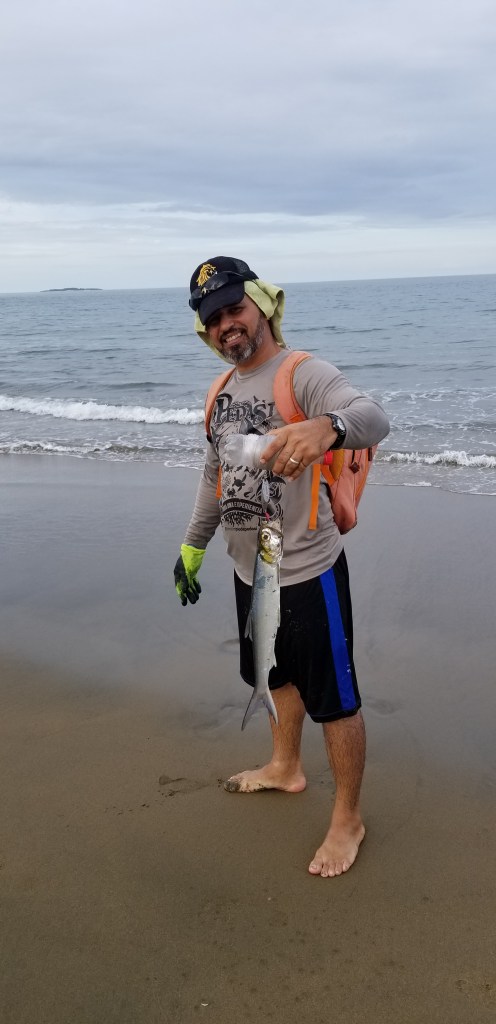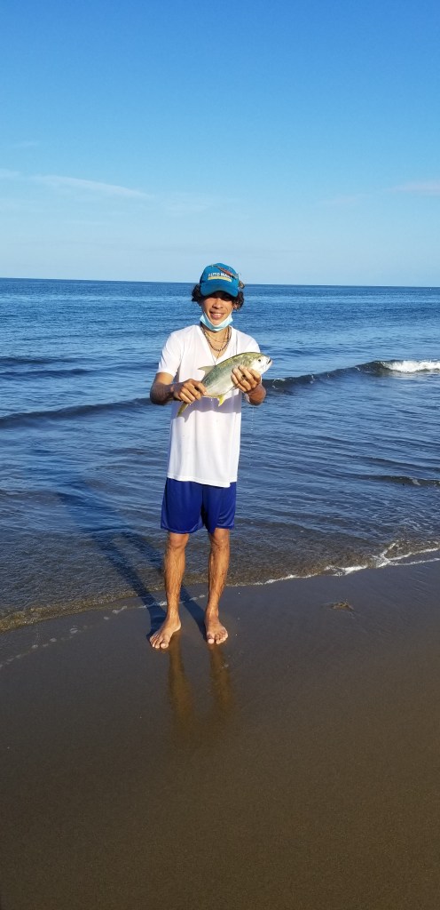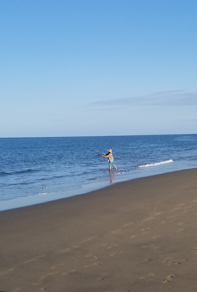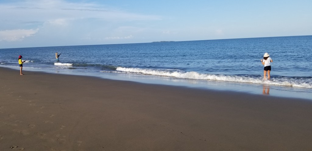 The other big difference was the number of people, usually it is just us. There were so many local people fishing (at least 20 on this very long beach), most were standing on the shore casting with a rod and reel. Others were just using the reel and seemed to be throwing it like a cowboy with a lasso.