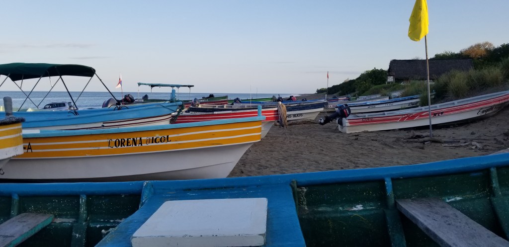 You get a totally different perspective of the beach later in the day. This is Playa El Arenal. At the end of the day the fishing boats have come in and are all lined up. It is colourful and beautiful.