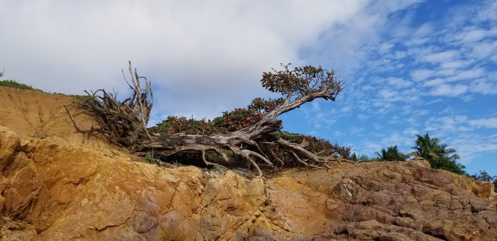 There are lots of trees along the banks that have fallen over, or look about to fall over, or have exposed roots. Beauty really is in the eye of the beholder. I spend as much time looking along the banks and at washed up tree stumps as looking at the beach and ocean.