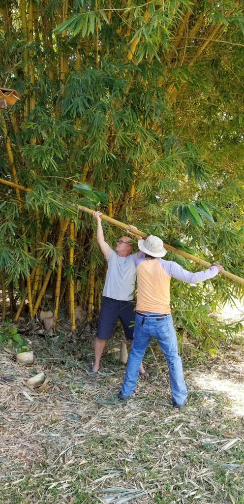 When we first arrived, this bamboo tree was leaning against the roof of the bohio and making an awful racket whenever the wind was blowing. For $5.00 we had it removed! In the right hands, a machete does a fine job.