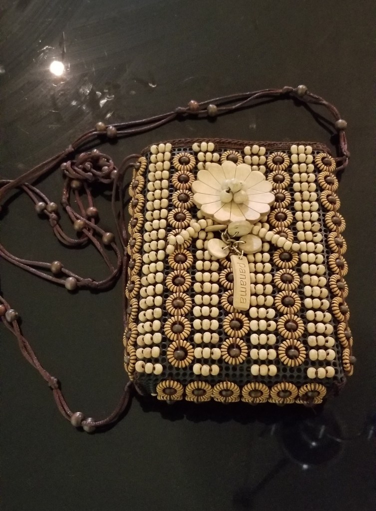 If my Spanish is good enough to be believed, both the hat and purse are locally made, with coconut shells being used on the purse.