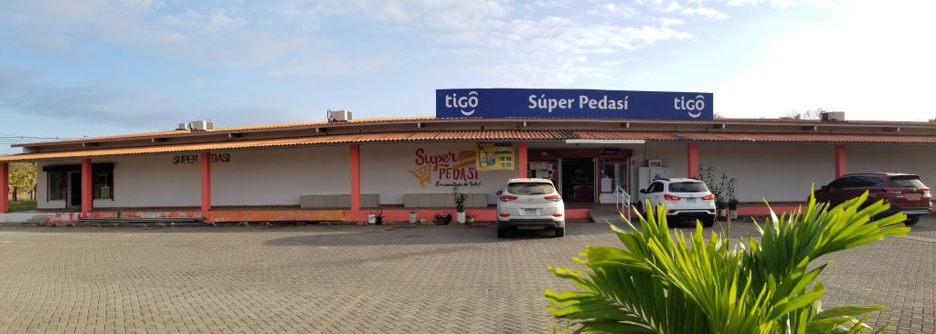 We mostly shop at two grocery stores, that are located at either end of town. The Mini Super Major Ana is only a couple of minutes walk for us. Love being able to say, “oh, I need…” and then walk to the store to get it. Just to the right of the grocery store and the hardware store (Melo Y Cia) there is a shop that is very much like a dollar store that we visited frequently when we first arrived. You know, all those little things that you want and aren’t in a rental, well there’s the place to go!. And just to the right of the ‘dollar store’ there is a restaurant with very good rotisserie chicken….and ribs….and more.