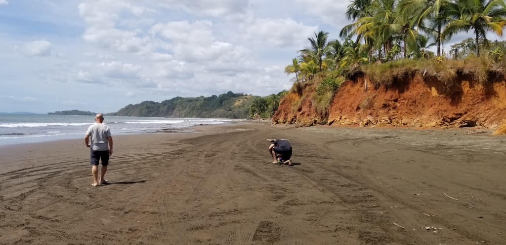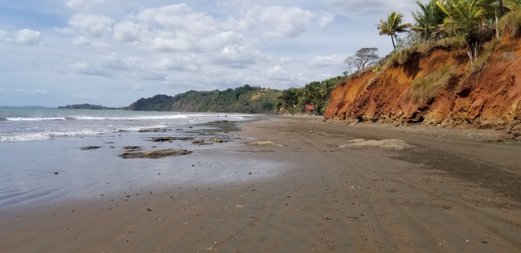 Another beautiful beach. There were not many, but a few people around. And this town had some houses close to the beach, which Pedasi doesn’t have. By now it was way past my lunch time. The restaurant was cool and the food was good. The chef did have a tough time understanding why Daryl would order a hamburger without the bun! No problem understanding the words, it was the why!