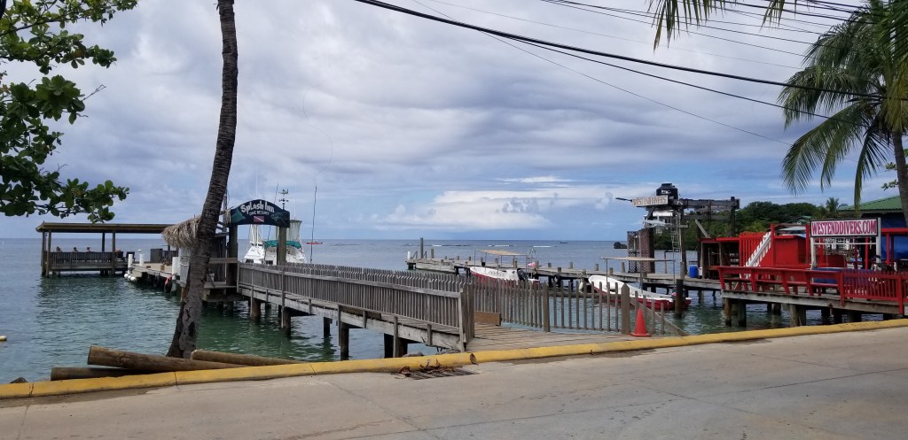 After three months in Pedasi, with the temperature around 30C-31C every day, lots of sunshine and not a drop of rain, we arrived on Roatan to cool temperatures (25C), cloud and rain. How sad is it to say, I was ‘freezing’ for the first couple of days we were here.