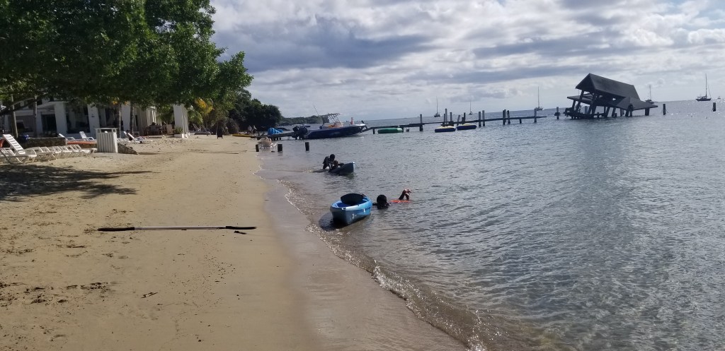There is a story that goes with this falling down dock.Several years ago it was still fairly intact. Daryl spent many, frustrating for him I am sure, hours teaching and encouraging me to jump in the water wearing my snorkel gear. This was a valiant attempt on his part to help me overcome the fear of jumping off a boat. (Probably also to stop me from clinging to him in deep water). I am not sure it fully worked, but I am able to go snorkelling without a floatie, and enjoy it. The resort behind the dock was closed down and falling into disrepair. Now it looks fabulous and is booming.