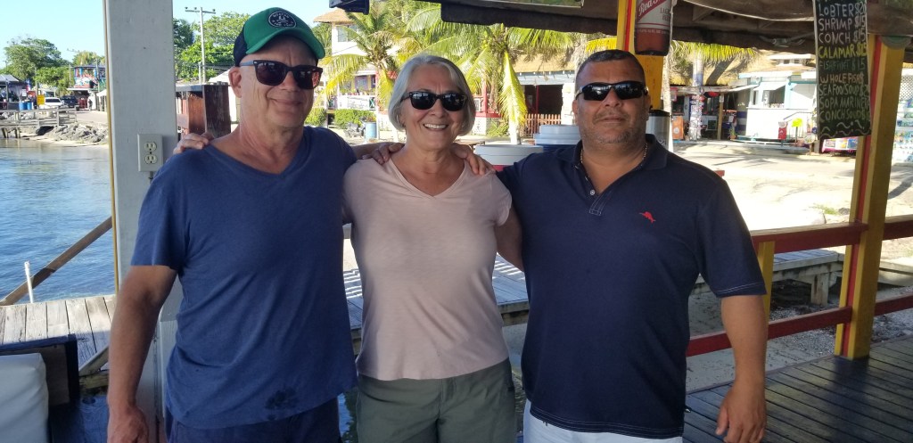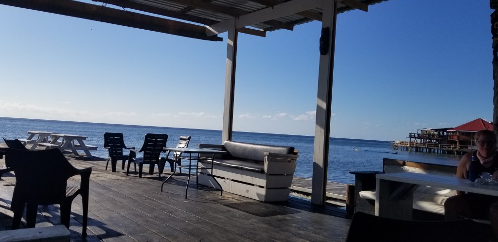 The first time we came to Roatan we met Eddy when he was selling tours from a little kiosk on the beach. We went zip lining! The next couple of visits Eddy had a bar/restaurant across the road from the beach. This trip he has a big place right over the water. I know it doesn’t look busy but it was, I waited and took a picture of one side without people because nobody was turning their face away!