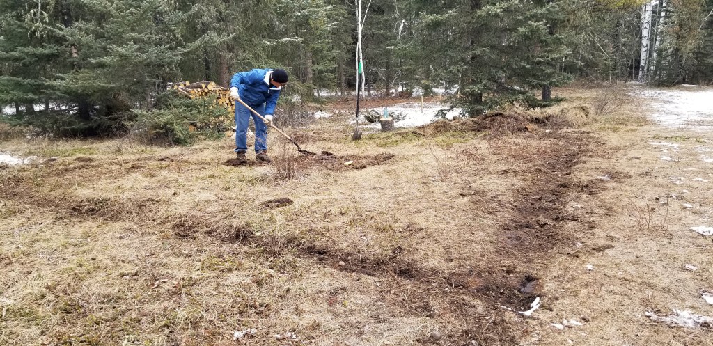 It was not easy digging up the grass as the ground was still quite frozen, there might be an inch or two of soil, then it was rocky.