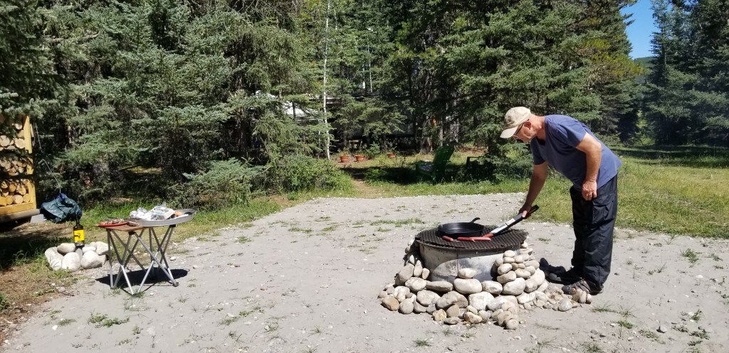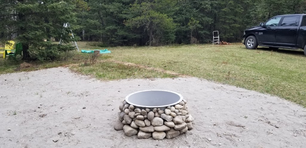 The fire pit works like a charm. The air vent must be working, fire catches easily and doesn’t give off a ton of smoke, At least that’s my theory from watching someone else build the fire! There is also a full rain barrel and hose very close….guess we must be rule followers! However, a fire out in the bush would be disastrous.