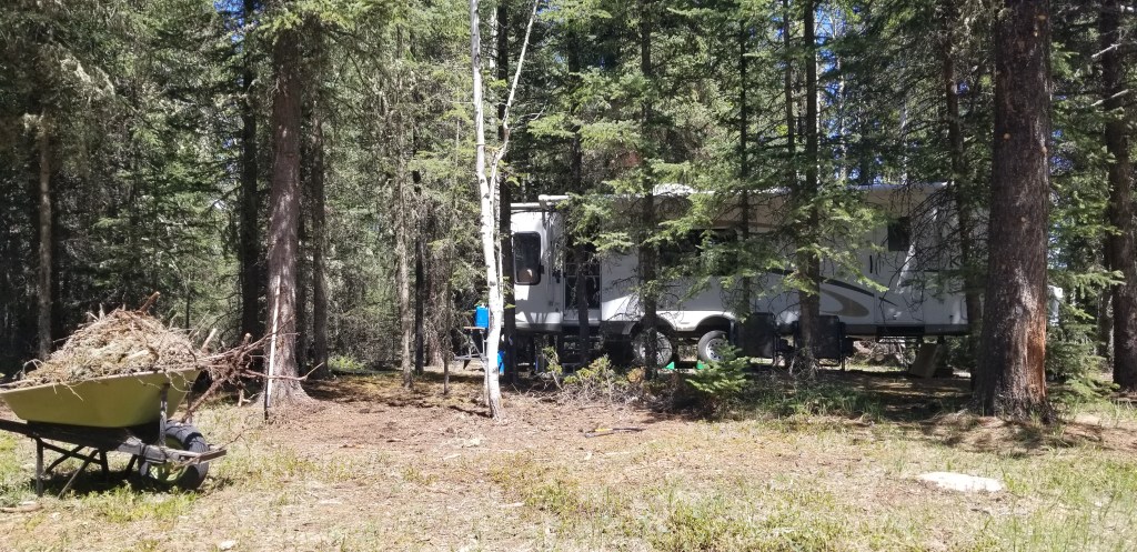 Summer 2021, when we knew we would eventually be bringing the trailer to el parque, the access road was in terrible shape. There was no way we were going to get the trailer across that road without bottoming out. So last fall we took it and had the axels flipped. It certainly raised the trailer enough that it went over this rutted road without any problem. Thankfully the road was graded and widened over the summer, so access no longer a problem.
