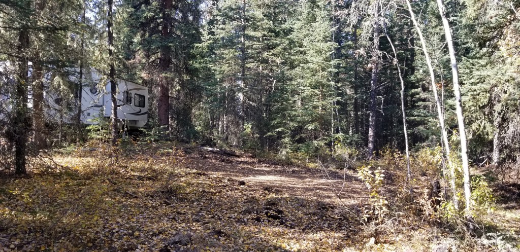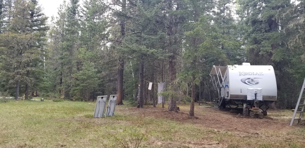 As with everything else, there were many rules and regulations around the placement of the trailer: it should not be visible from the road or the sky (alien invasion??). This property is two acres and has a very large open area in the centre and ‘falls off’ towards the back of the property. This made hiding the trailer a tad difficult. We ended up picking out three spots, two had much too much visibility, the last one had to work!