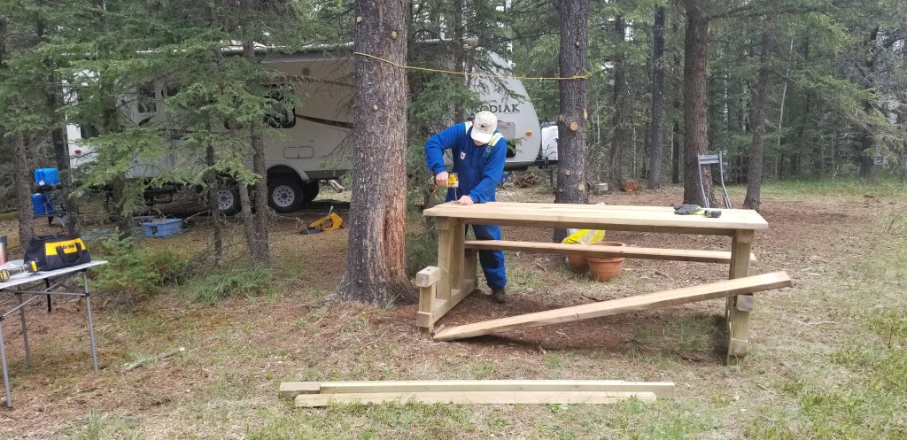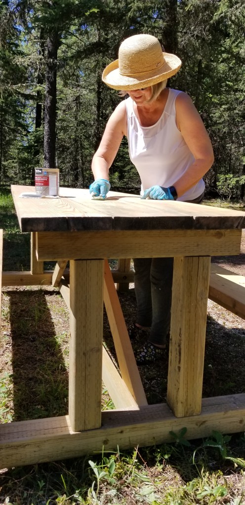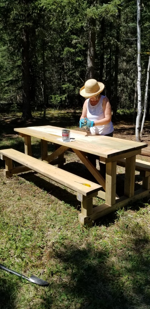 The place was really starting to take shape. Next we built and stained the picnic table.