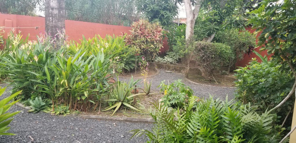 As you lie, sit or stand during the workout looking out over this garden, it is not at all unusual to see a hummingbird enjoying some of the flowering shrubs.