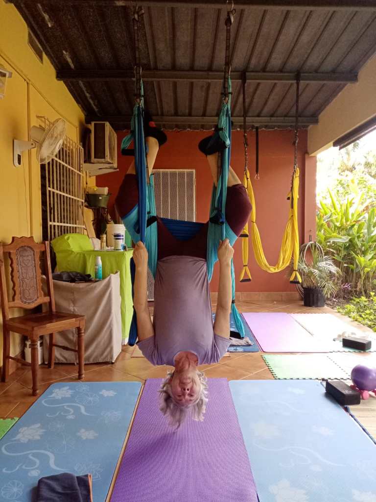 For the past few years I have followed a Pedasi Facebook page. Shortly before we left Calgary there was a post for aerial yoga that looked like something I would try. I replied with ‘interested’, then forgot about it until I got an inquiry back. By this time we were already in Pedasi.