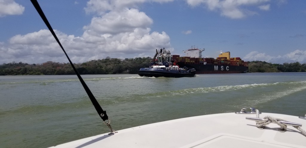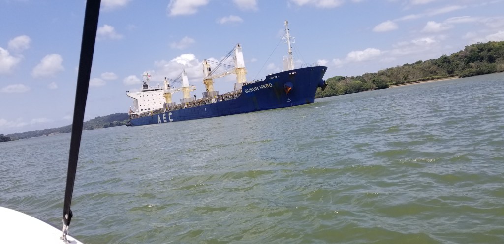 There were lots of big ship and containers with tug boats attached, on their way through the canal. We looked so tiny going past.