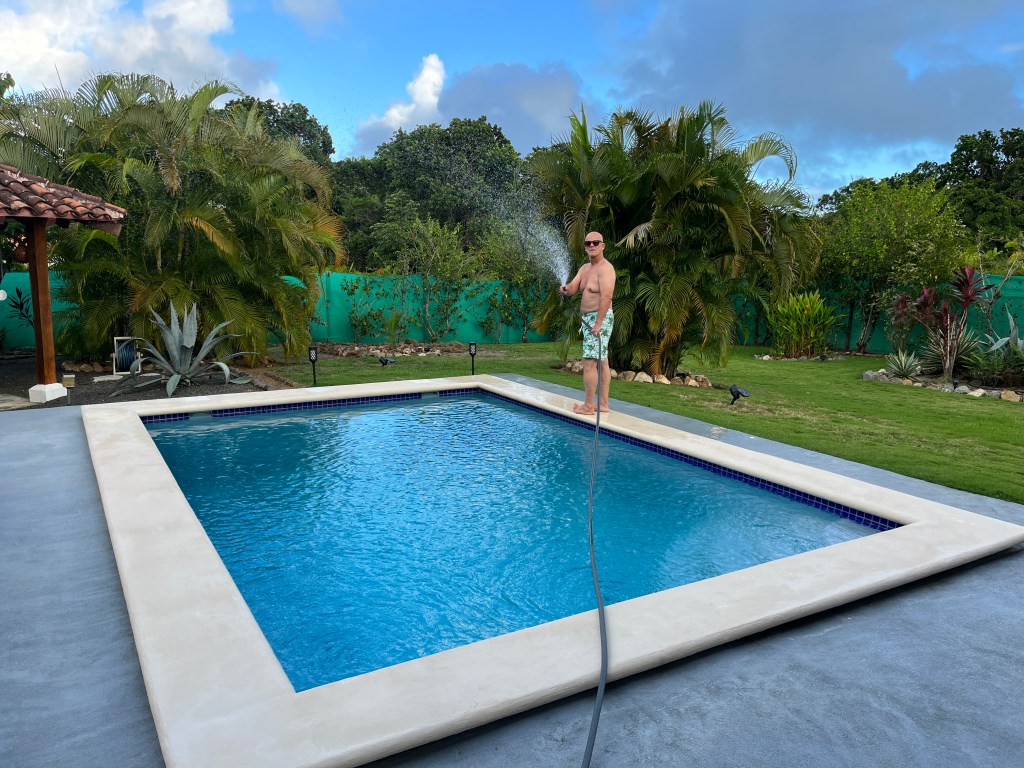 We have friends who have gone on vacation and are generously letting us use their pool. It is a pretty sweet spot!
