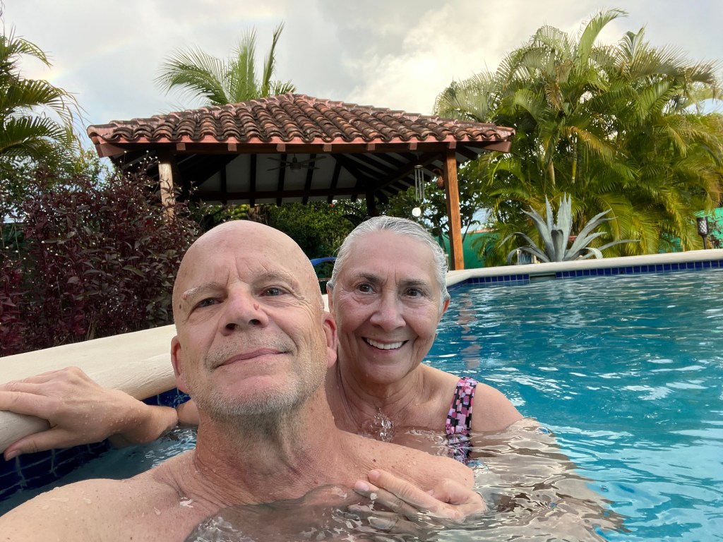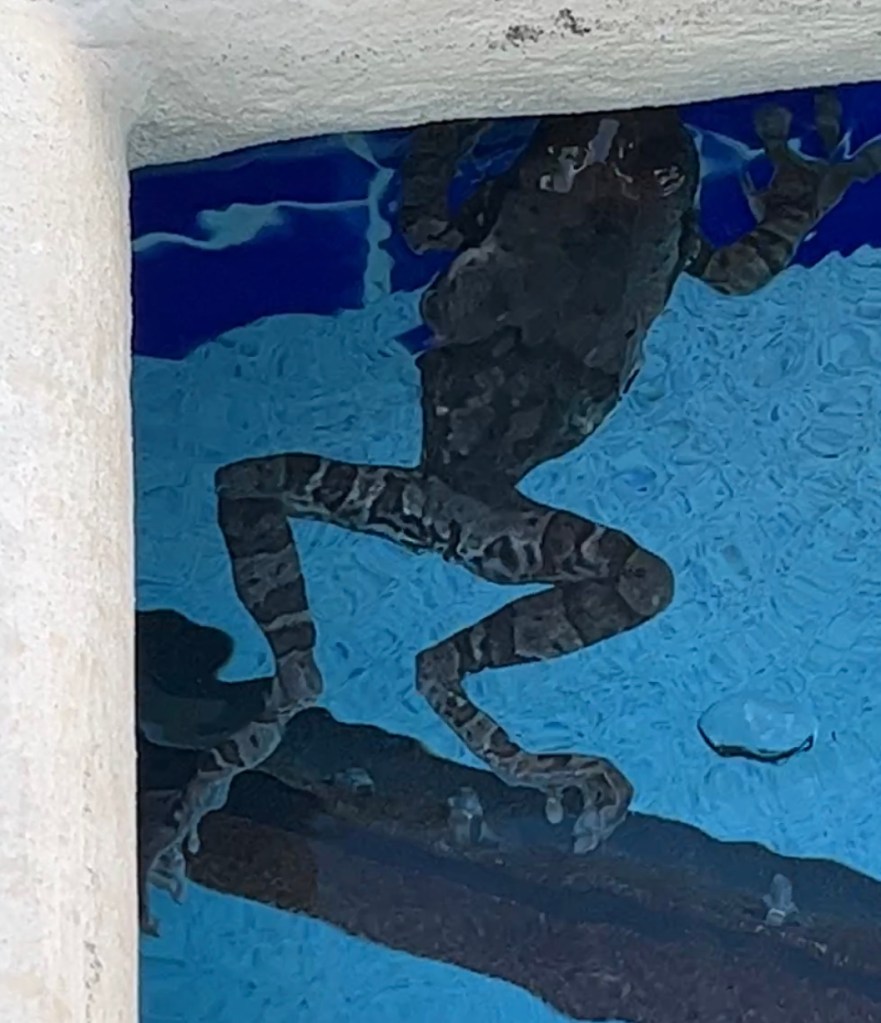 Well, we were standing in the pool talking when Daryl gently started moving me to a different spot. Then he said β€œa frog just bumped into my leg”. Guess he knew what my reaction would have been if that had been my leg! Daryl rescued it.