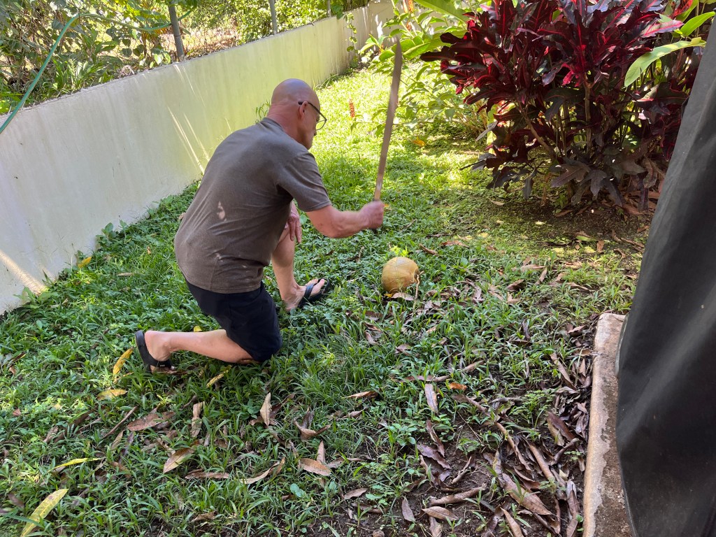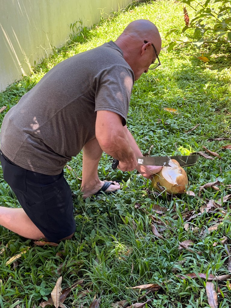 And then there are the fun things we don’t get to do at home. How often can you get your machete out in the back yard and hack open a coconut? This young coconut has a ton of yummy water.