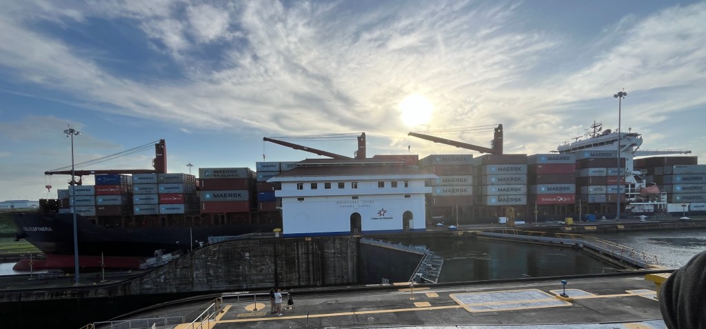 Miraflores is one set of locks that connects the Atlantic Ocean to the Pacific Ocean. The museum here is temporarily closed, however we had previously visited a museum in Casco Viejo that gave a good history of the canal’s construction.