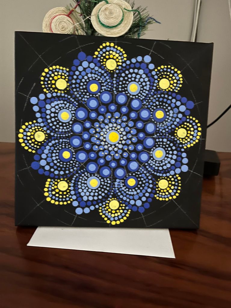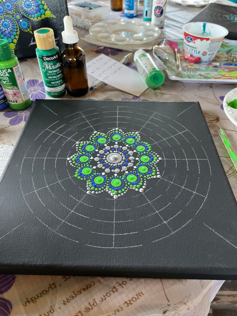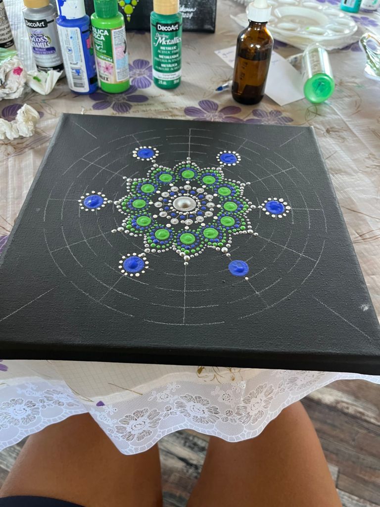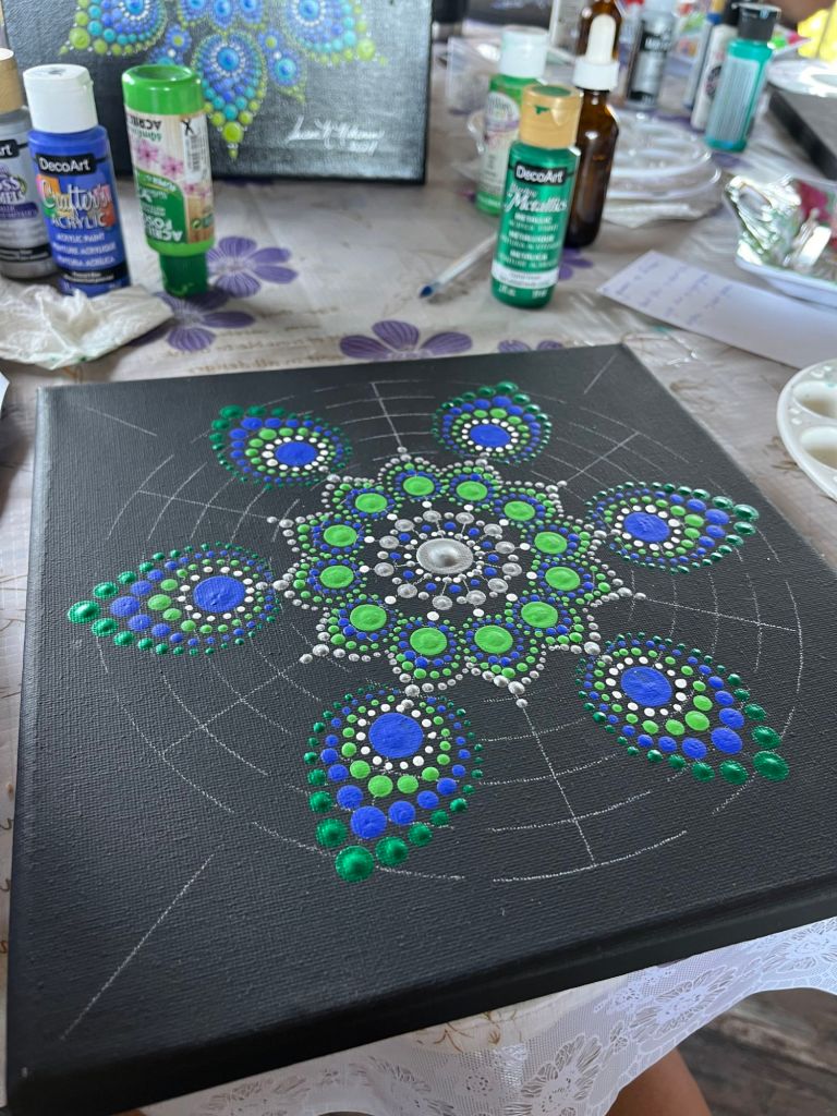 Making the mandala was fun and not difficult, as long as you followed the pattern. The instructor suggested I take the beginner lesson first as I had no idea of the process involved.