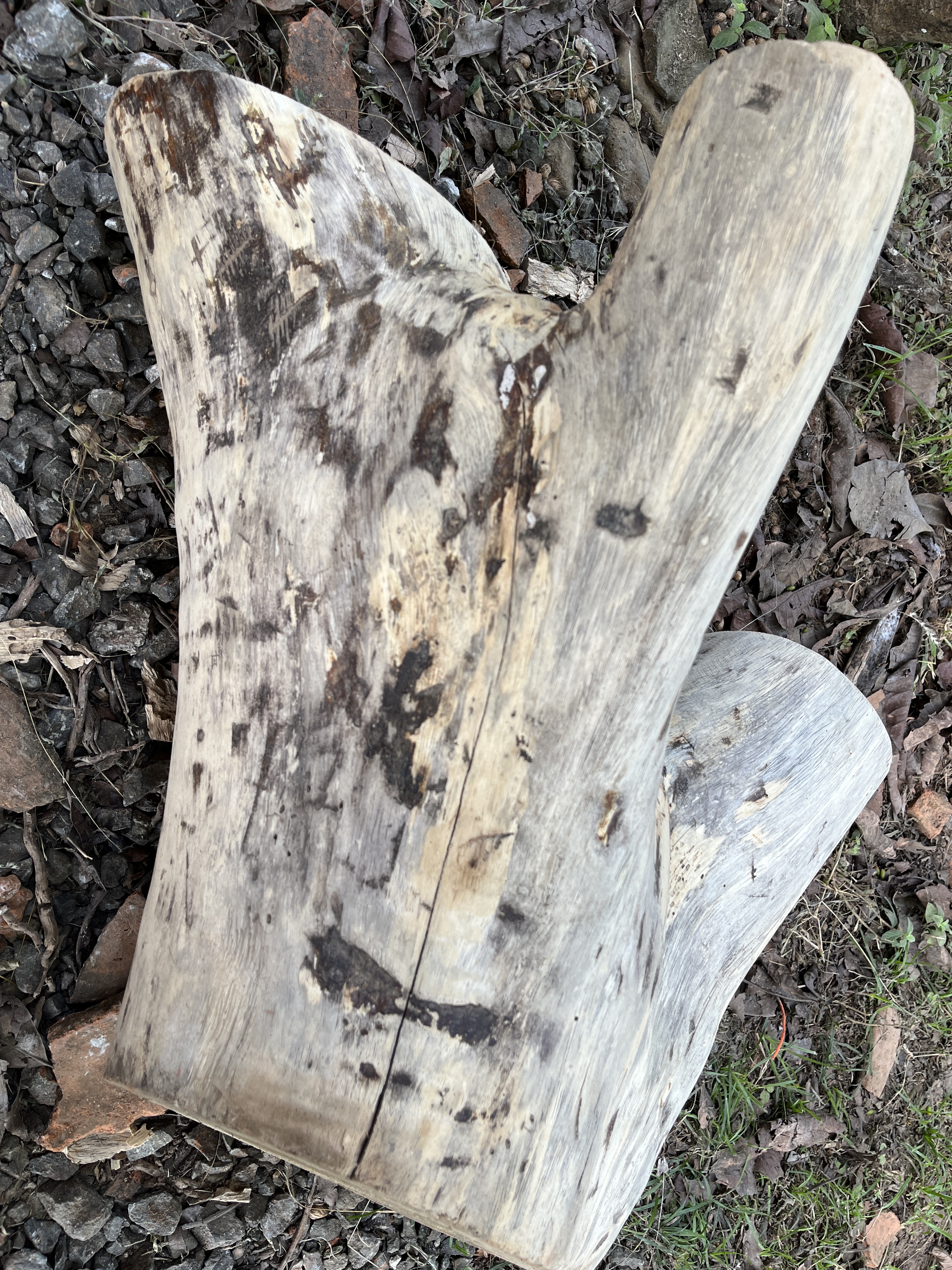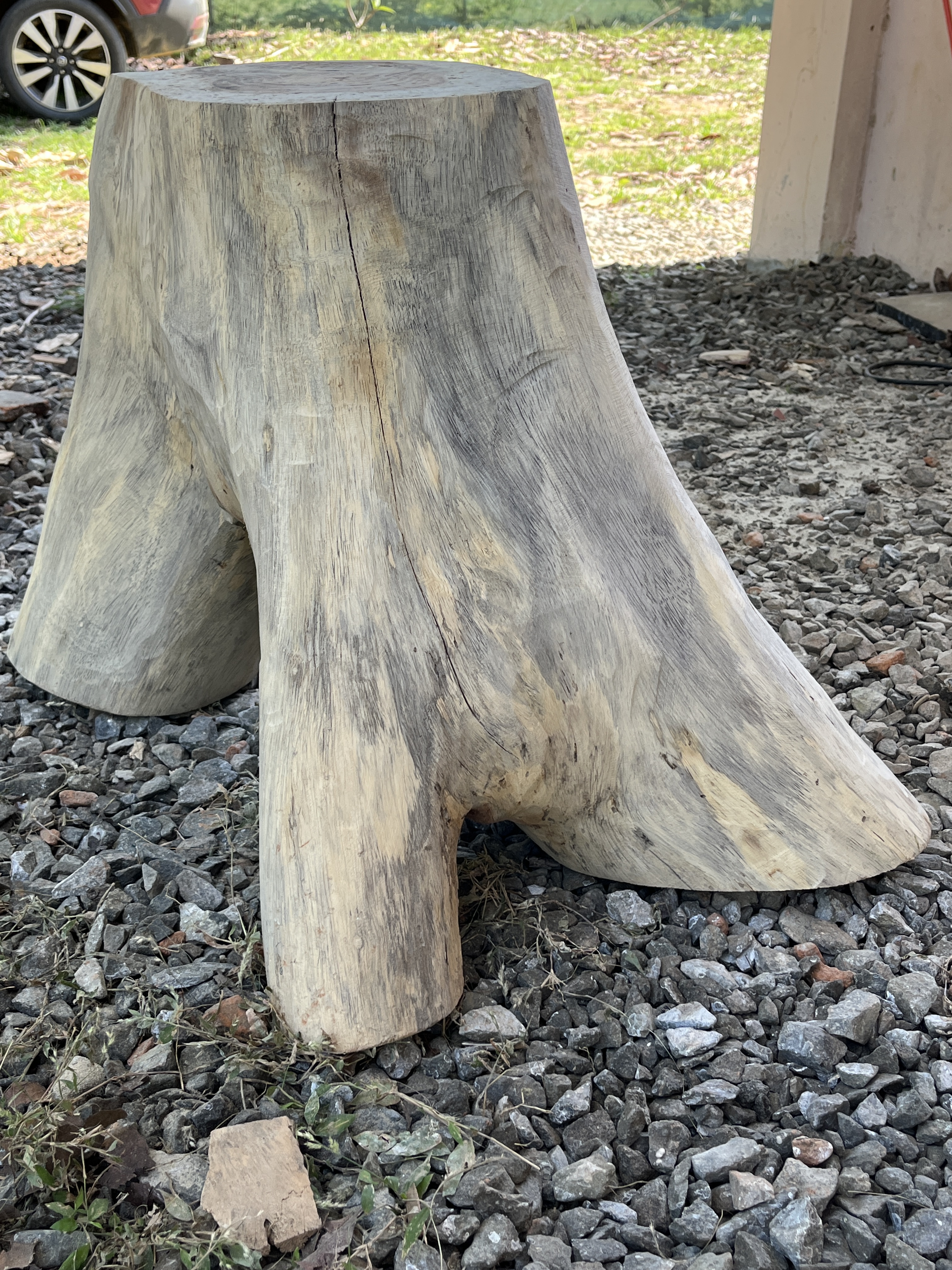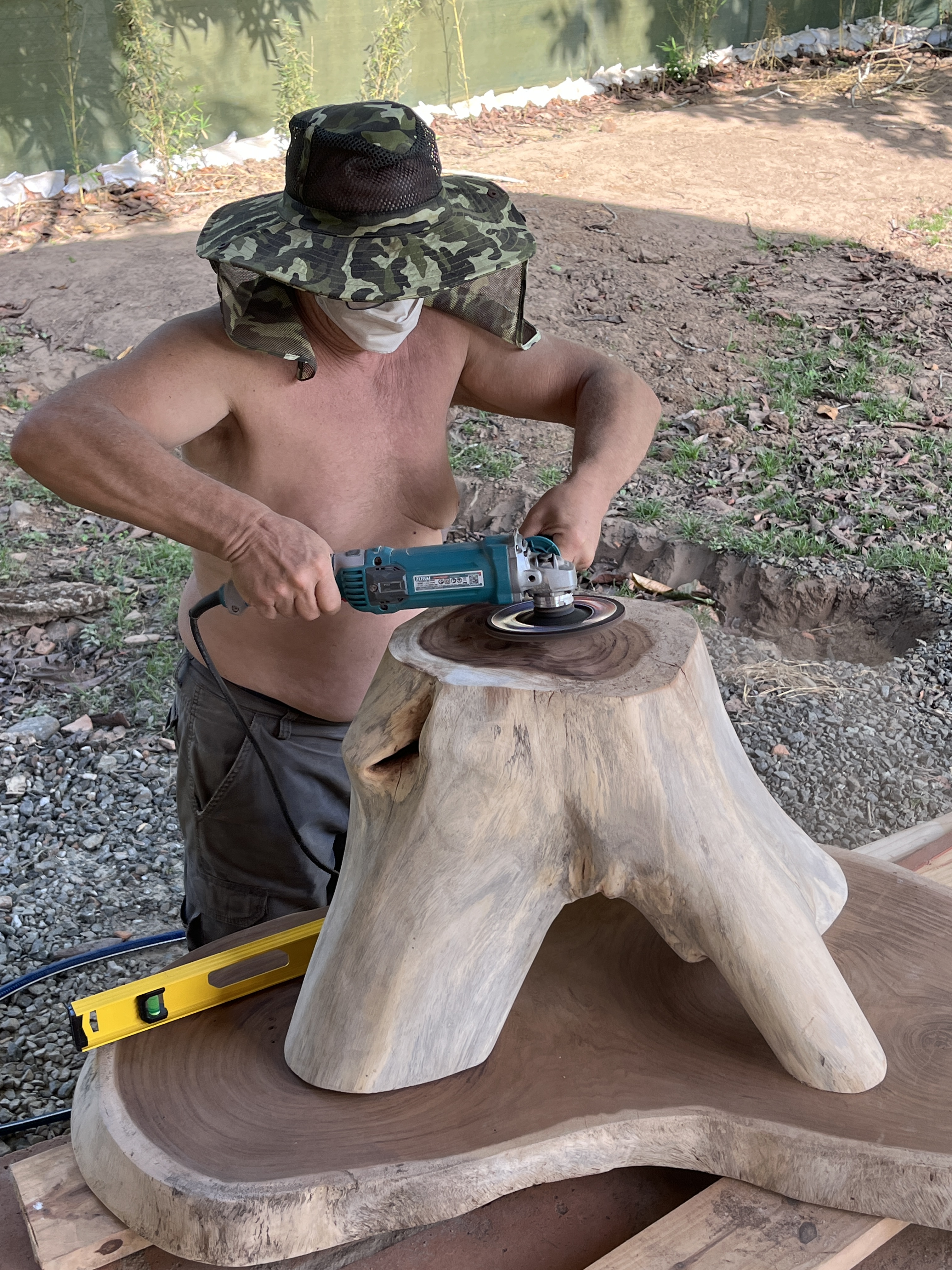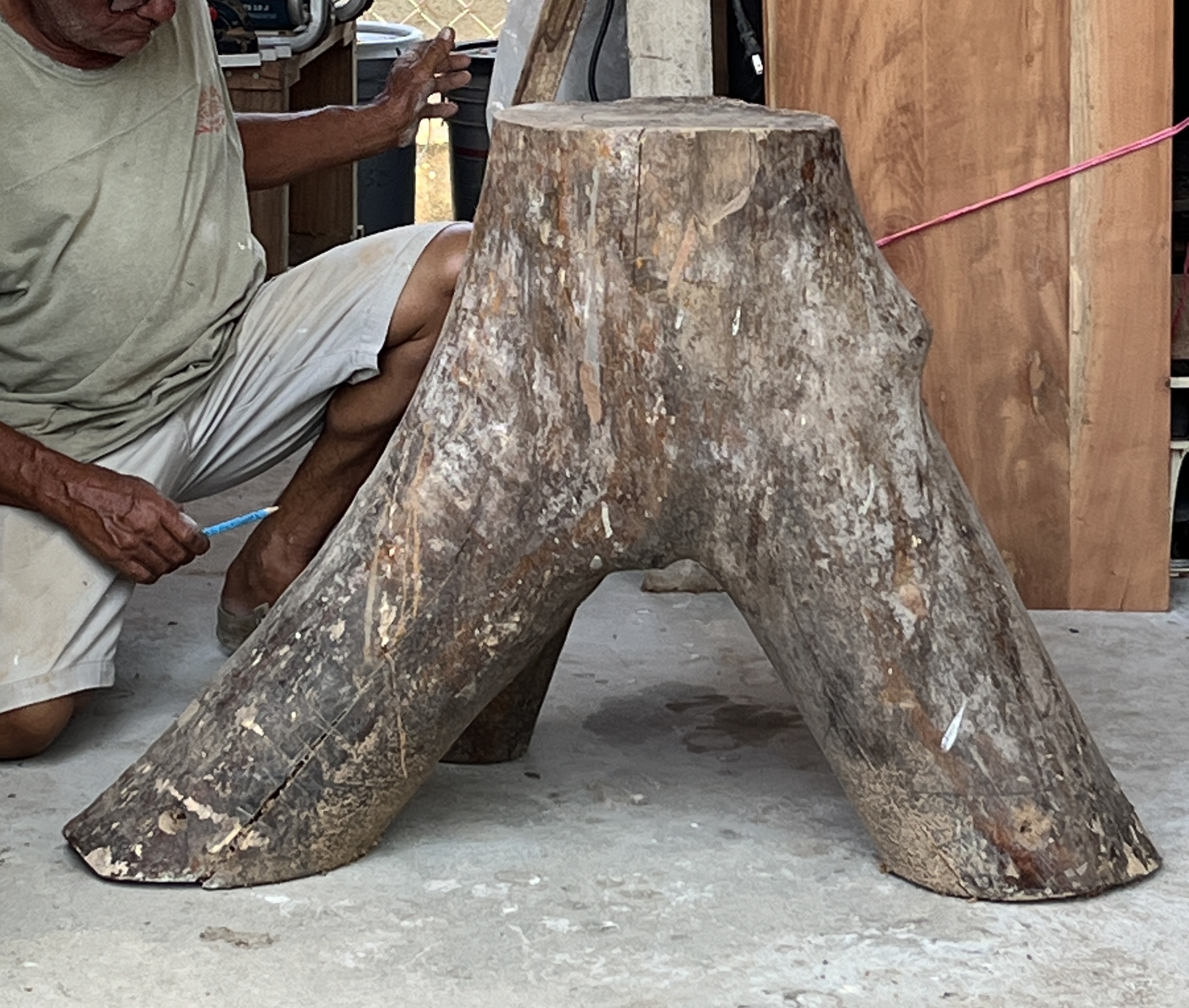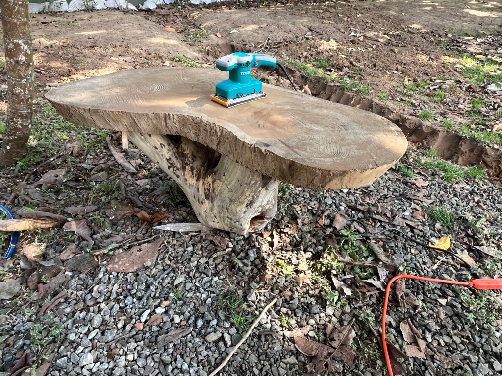 A year ago, March 2024, Daryl and I had the opportunity to purchase an old Corotu wood stump with a slab that could be used as a coffee table. We got the wood cut to height and brought it to our totally unliveable house.
