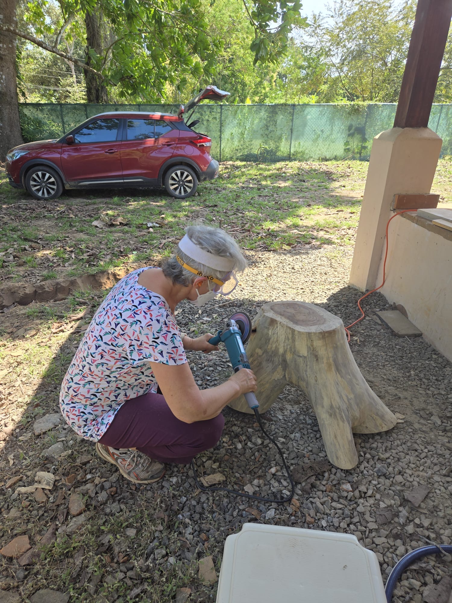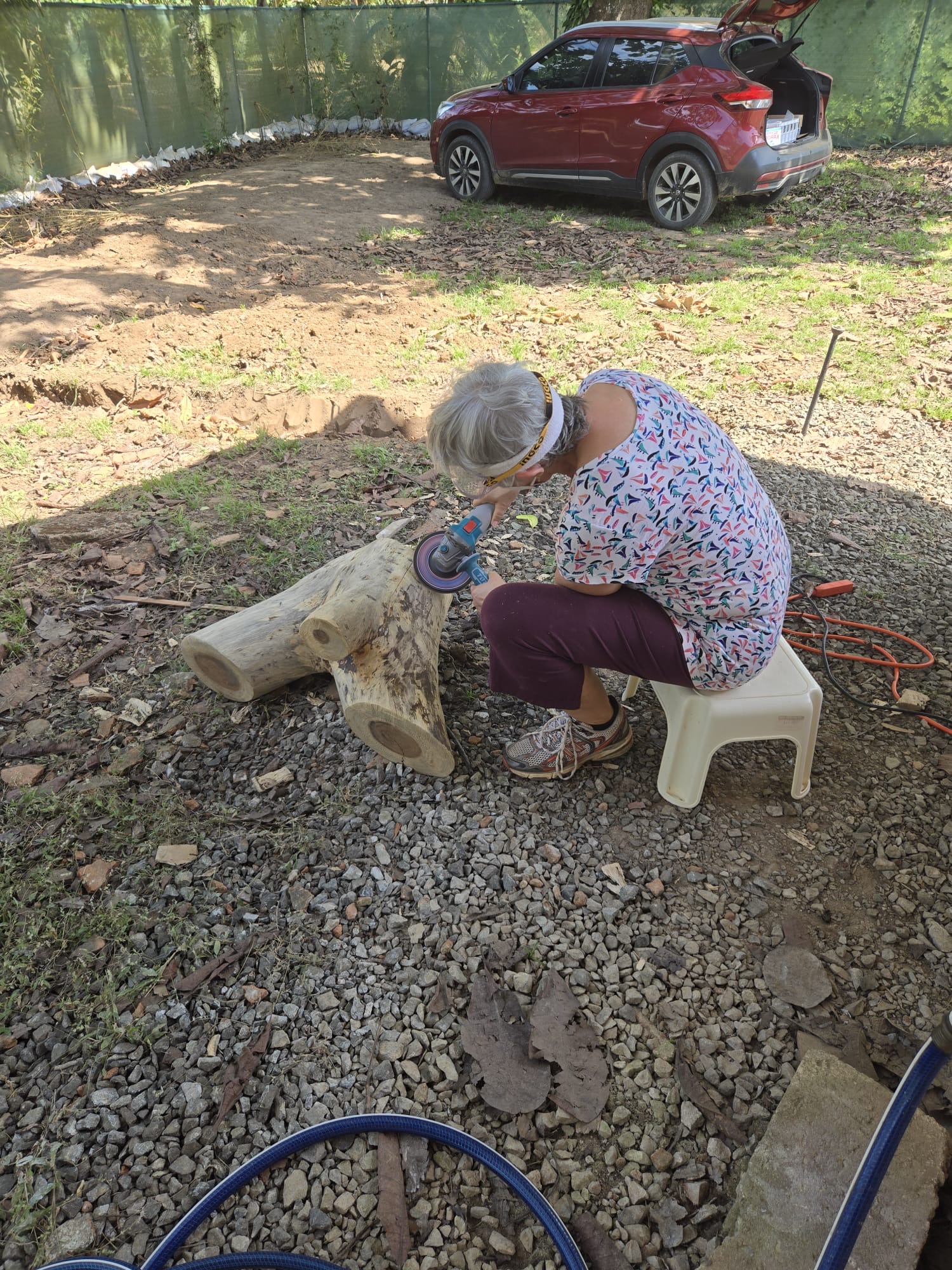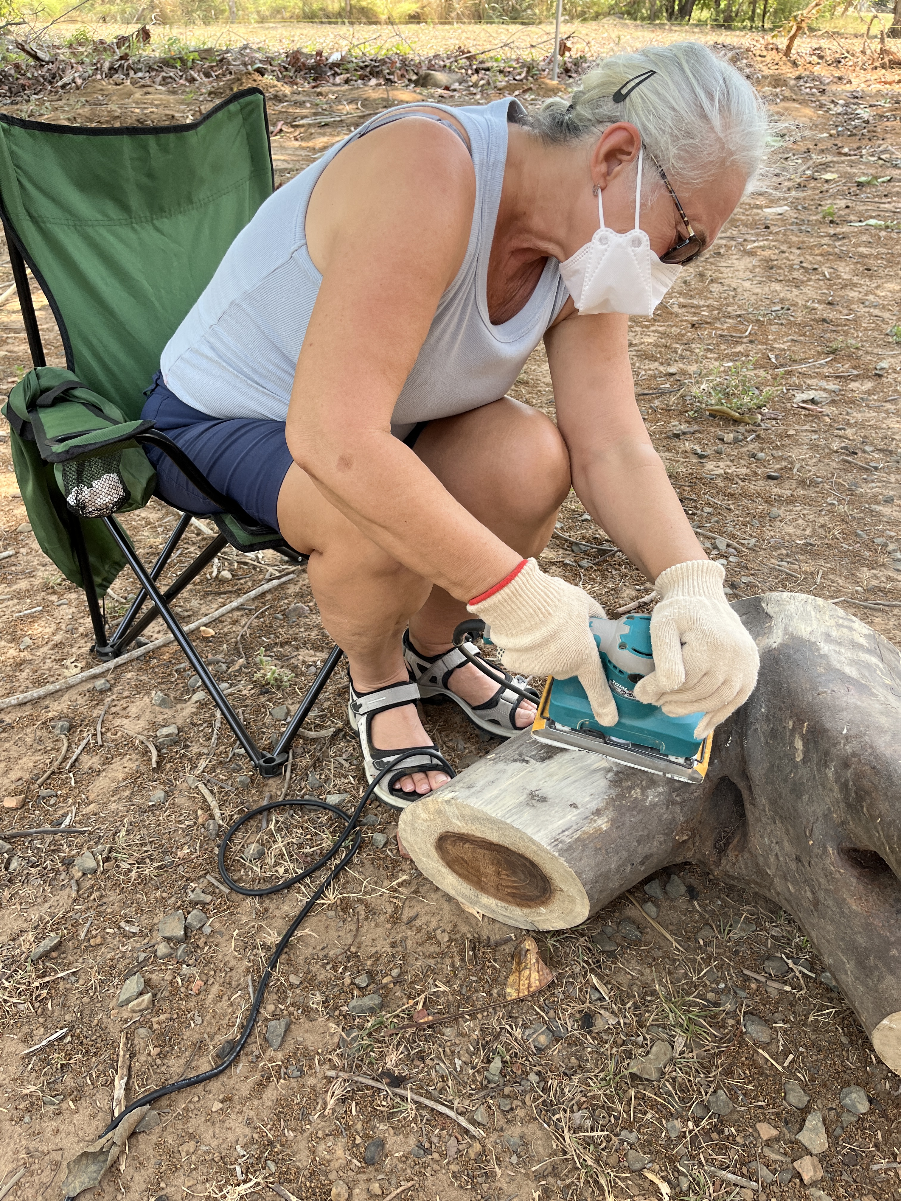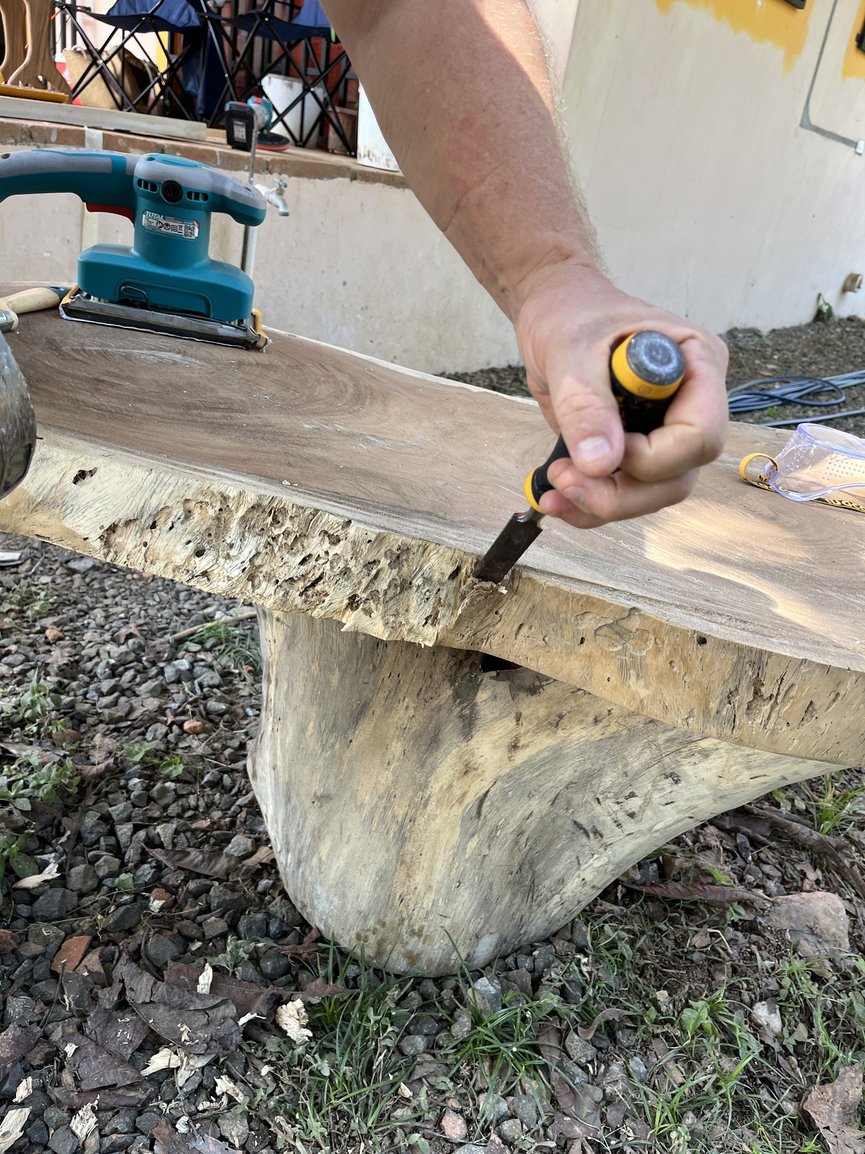 A year ago, March 2024, Daryl and I had the opportunity to purchase an old Corotu wood stump with a slab that could be used as a coffee table. We got the wood cut to height and brought it to our totally unliveable house.