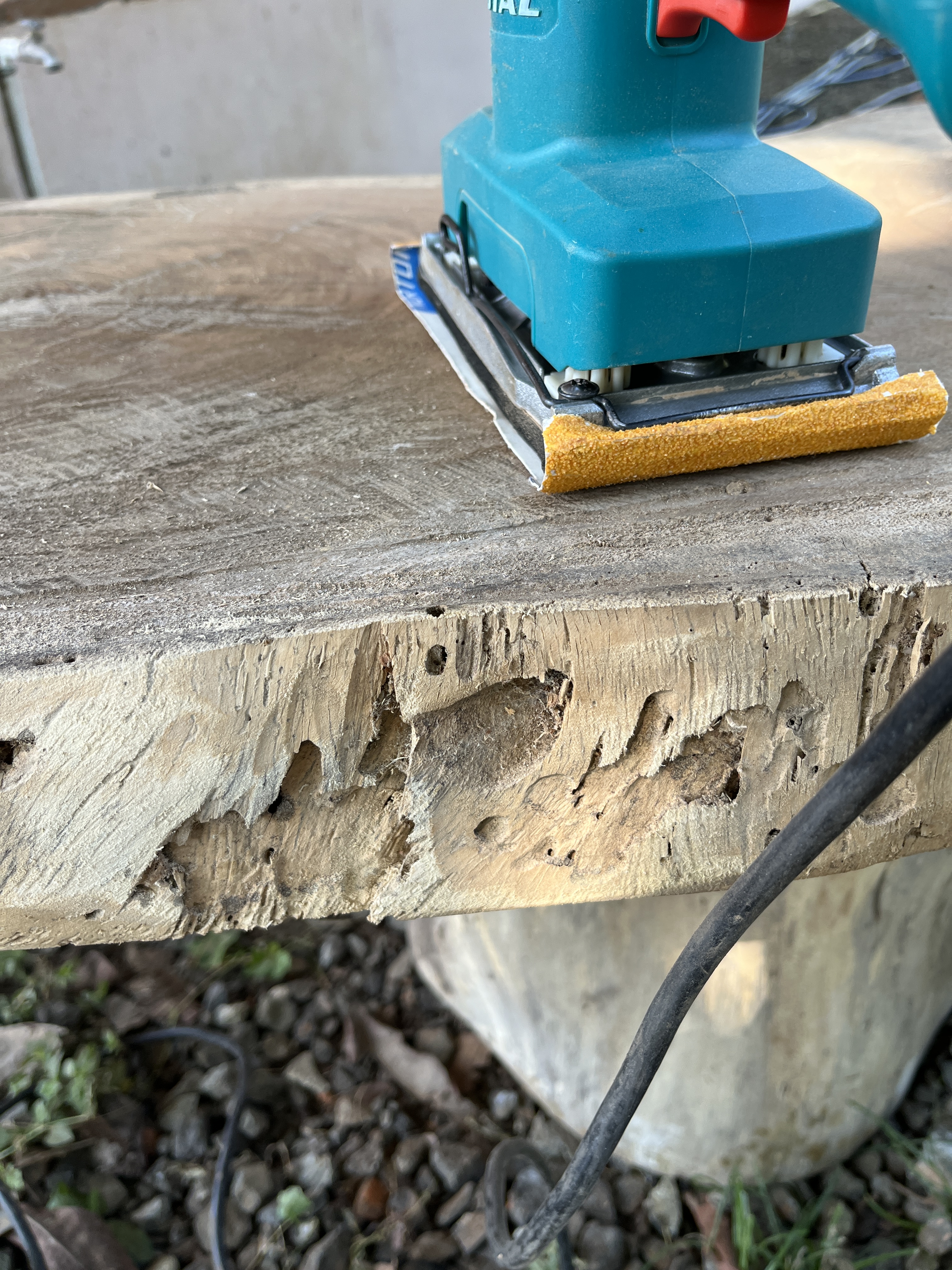 It actually looked good until you got up close and started sanding. Then there were so many holes where bugs had been eating the wood. There were no live bugs as thankfully the insecticide from the previous year had done its job.