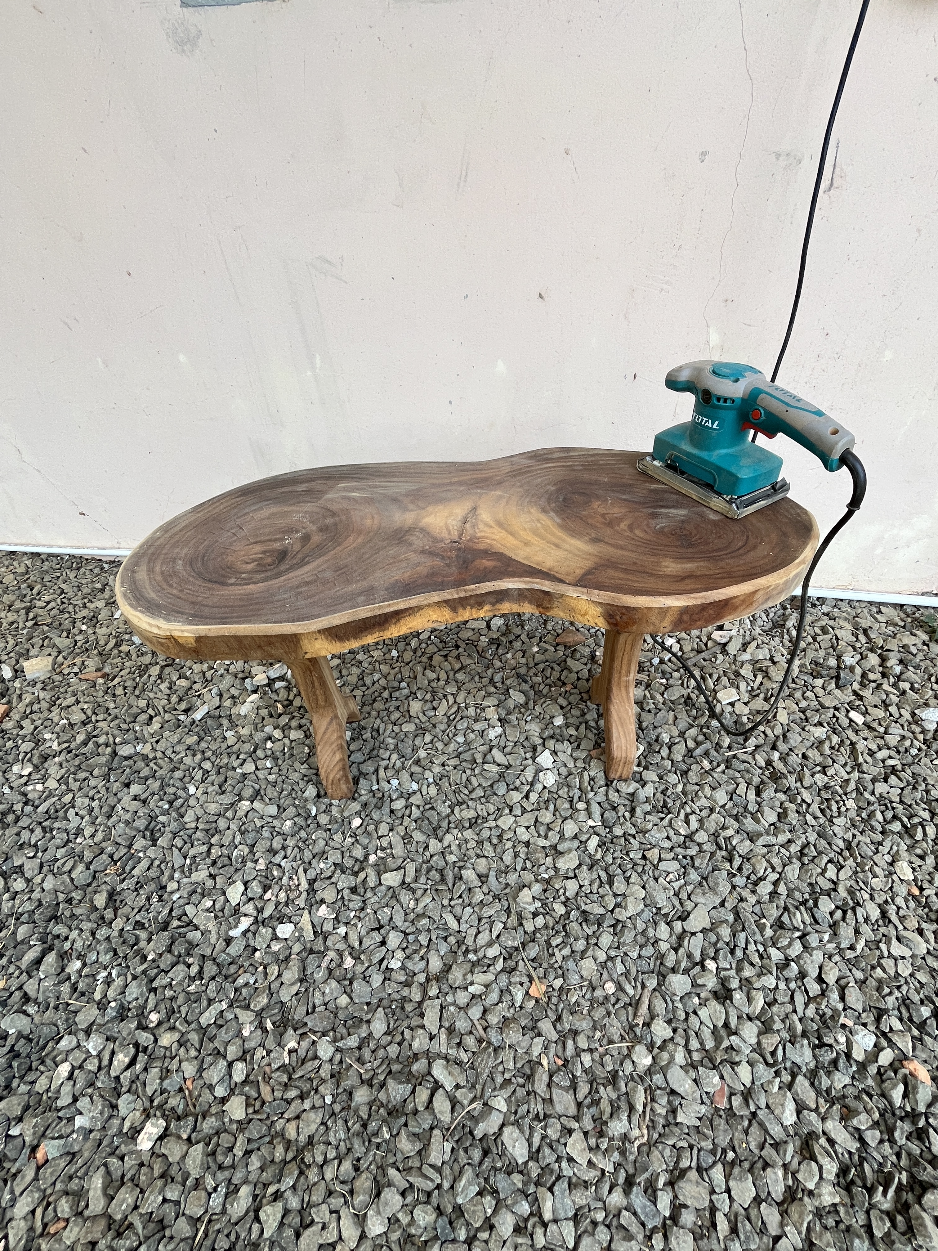 The $40 table we watched being made last year and have been using outside, just needed a good sanding and clear sealer to become an end table.