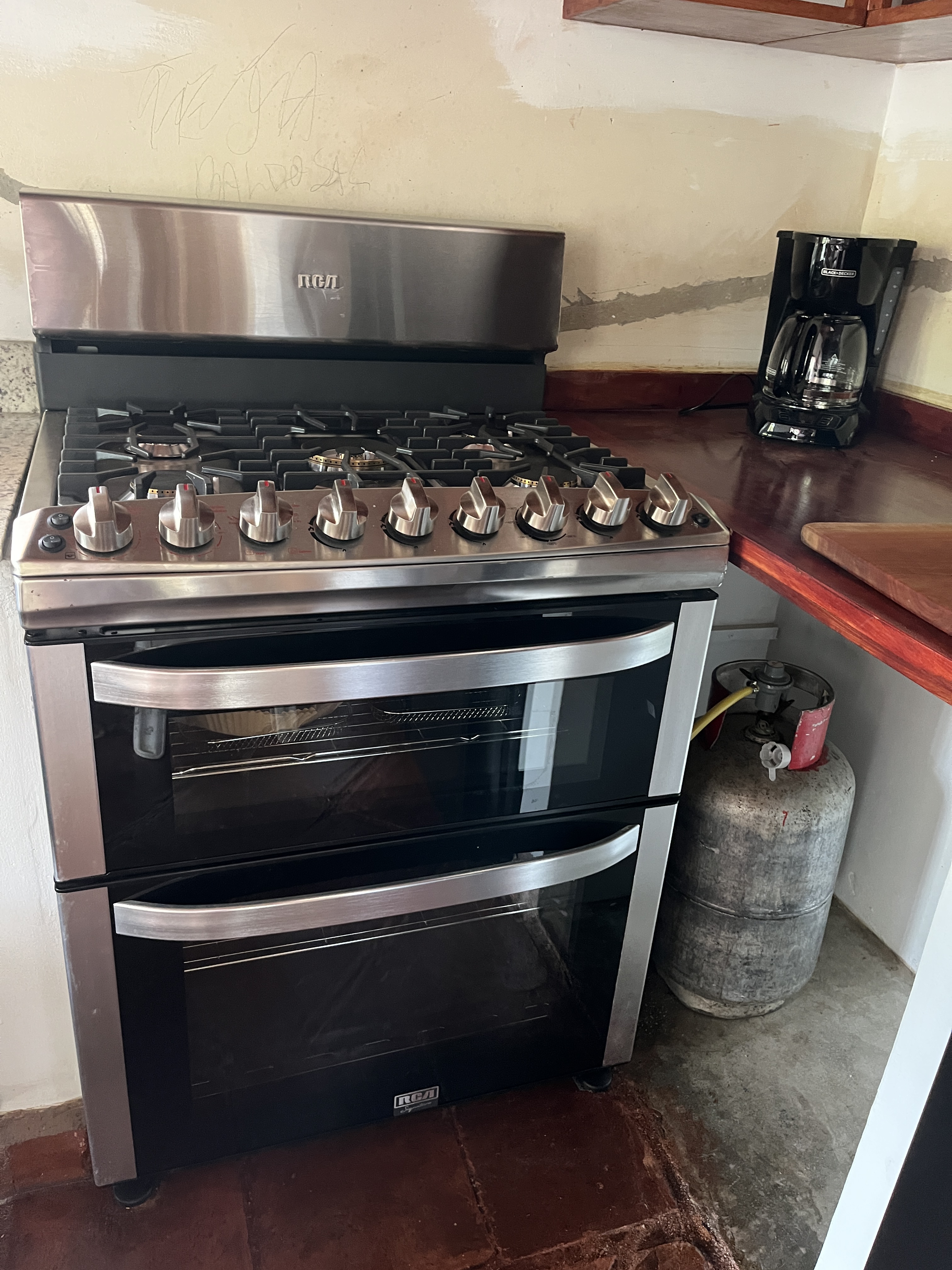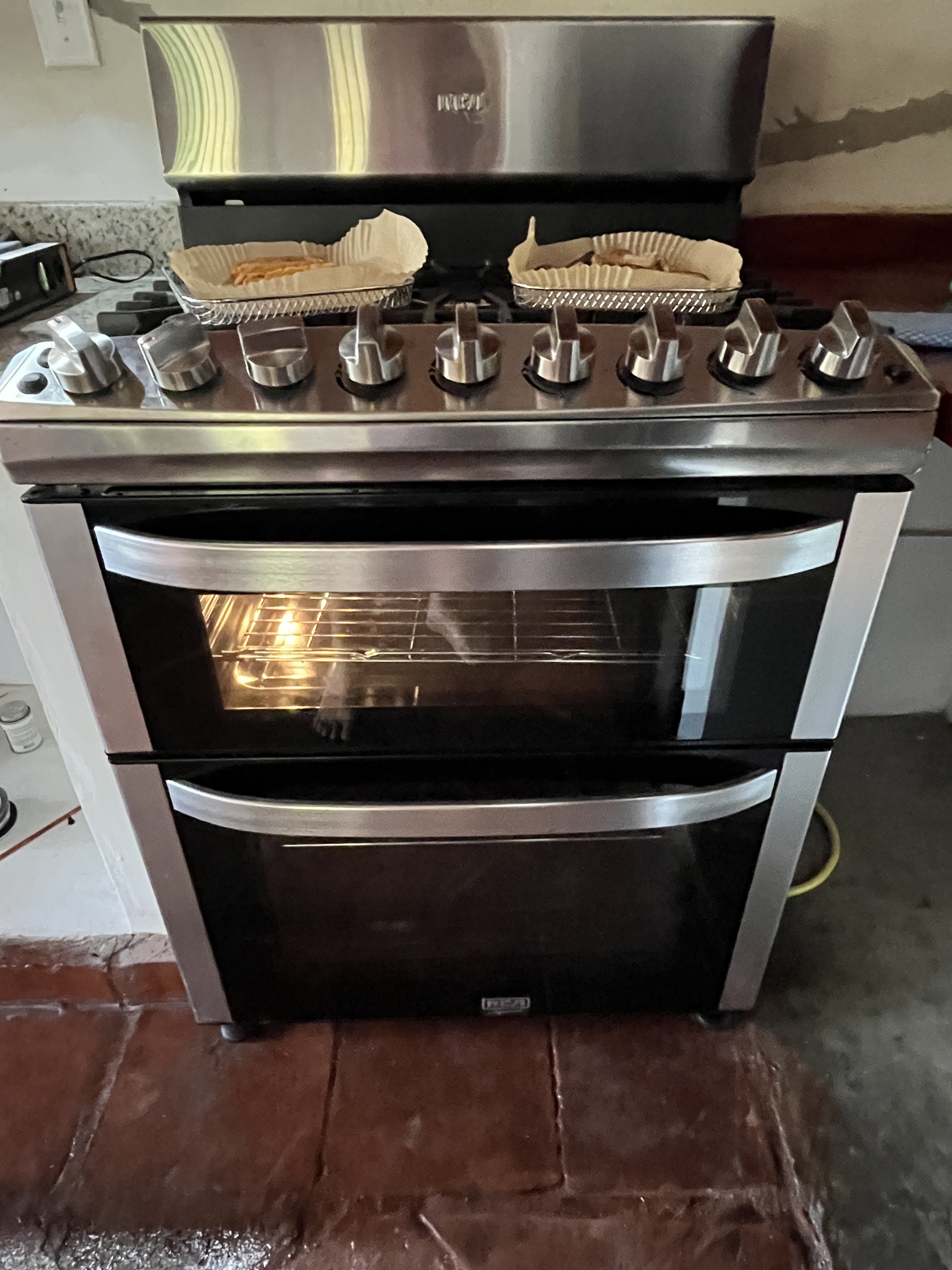 The house we have rented for the past three winters has a gas stove. I have had a terrible time adjusting the oven temperature to anywhere near where it is supposed to be. However, last year when we arrived there was an air fryer oven with multiple functions. It worked so well. When shopping for the ‘new’ house, we found a stove with two ovens, the top an electric air fryer, and the bottom gas. It came with zero instructions so the functioning is a work in progress as there are a zillion buttons, but we are getting there! I find it weird that the gas tank for the stove is inside the house. At some point Daryl will drill a hole in the wall and put the tank outside. The backsplash is also a project for another year.