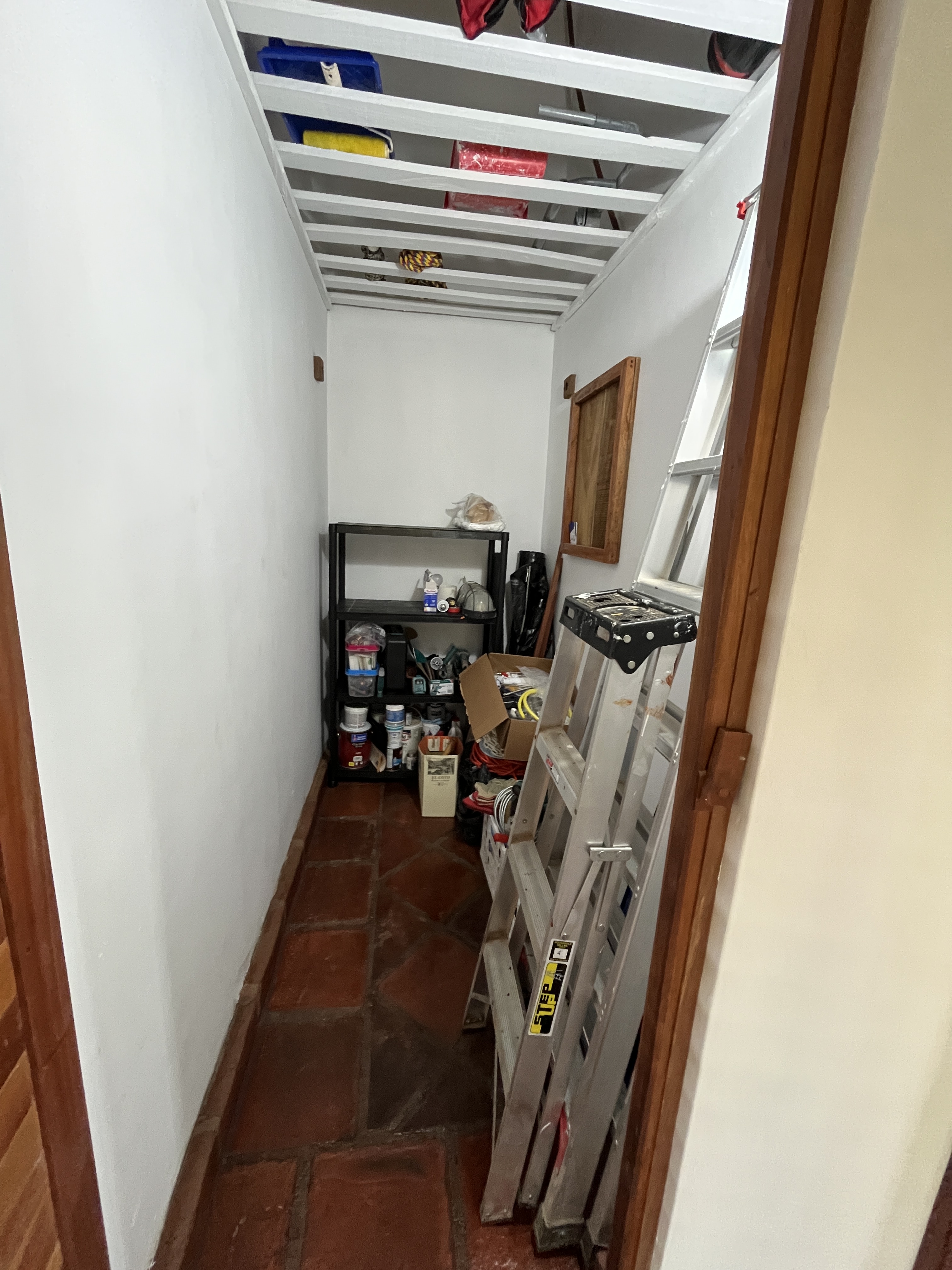 Storage space is at a premium. There is one storage area in our bedroom, above this space and above both closets, storage space has been created. Also above the washer and dryer area. Amazing what you can put ‘up there’.