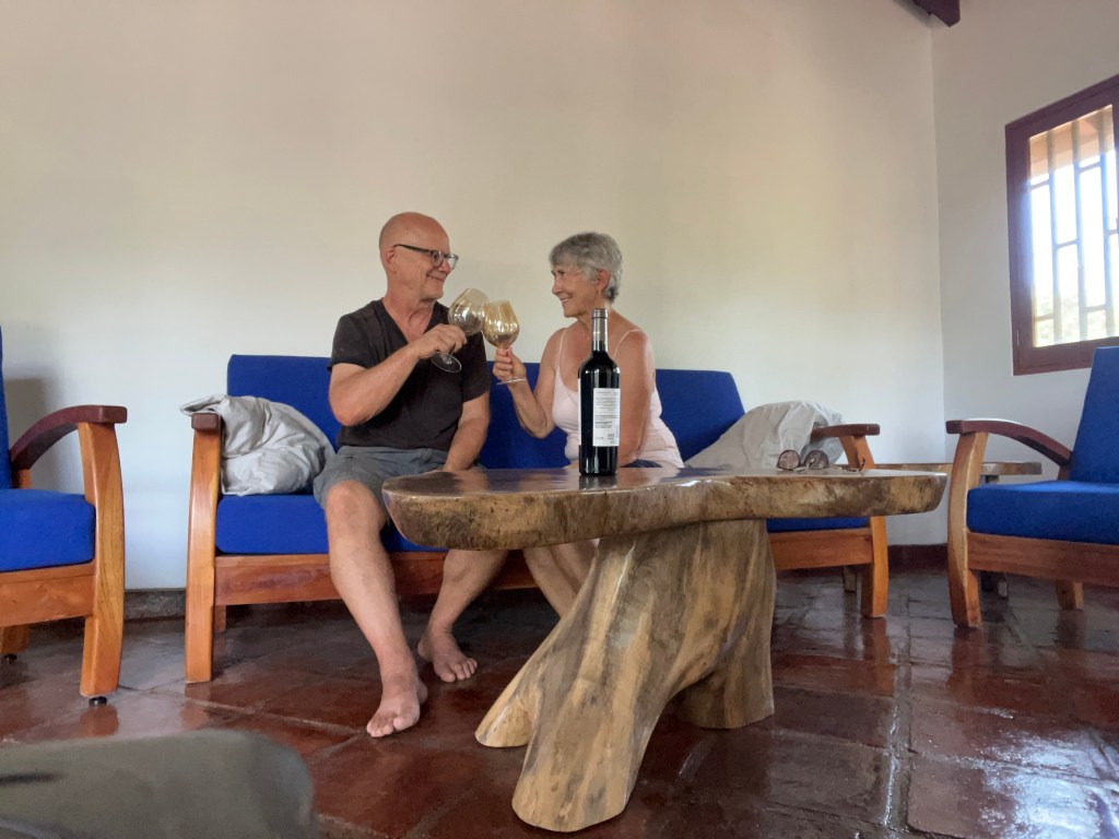 We didn’t smash the bottle, but we did have a glass of wine to celebrate our new home away from home.