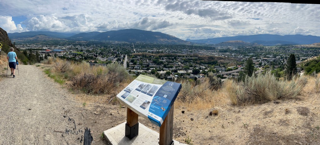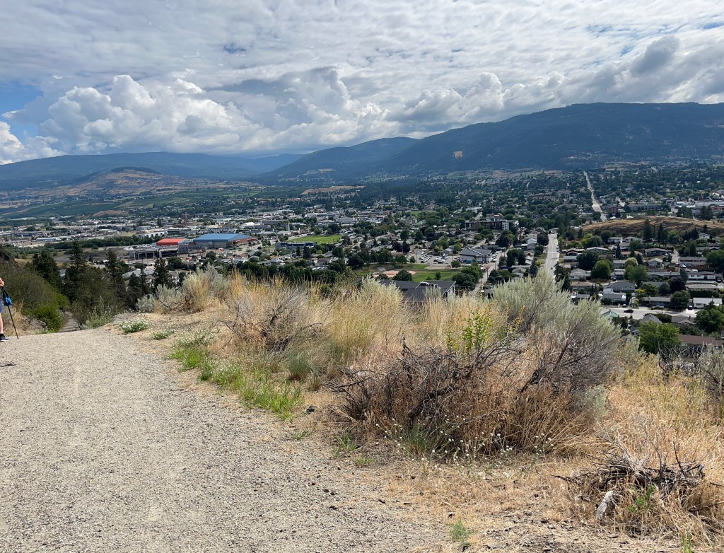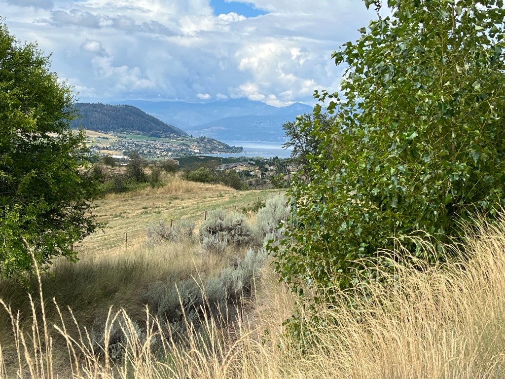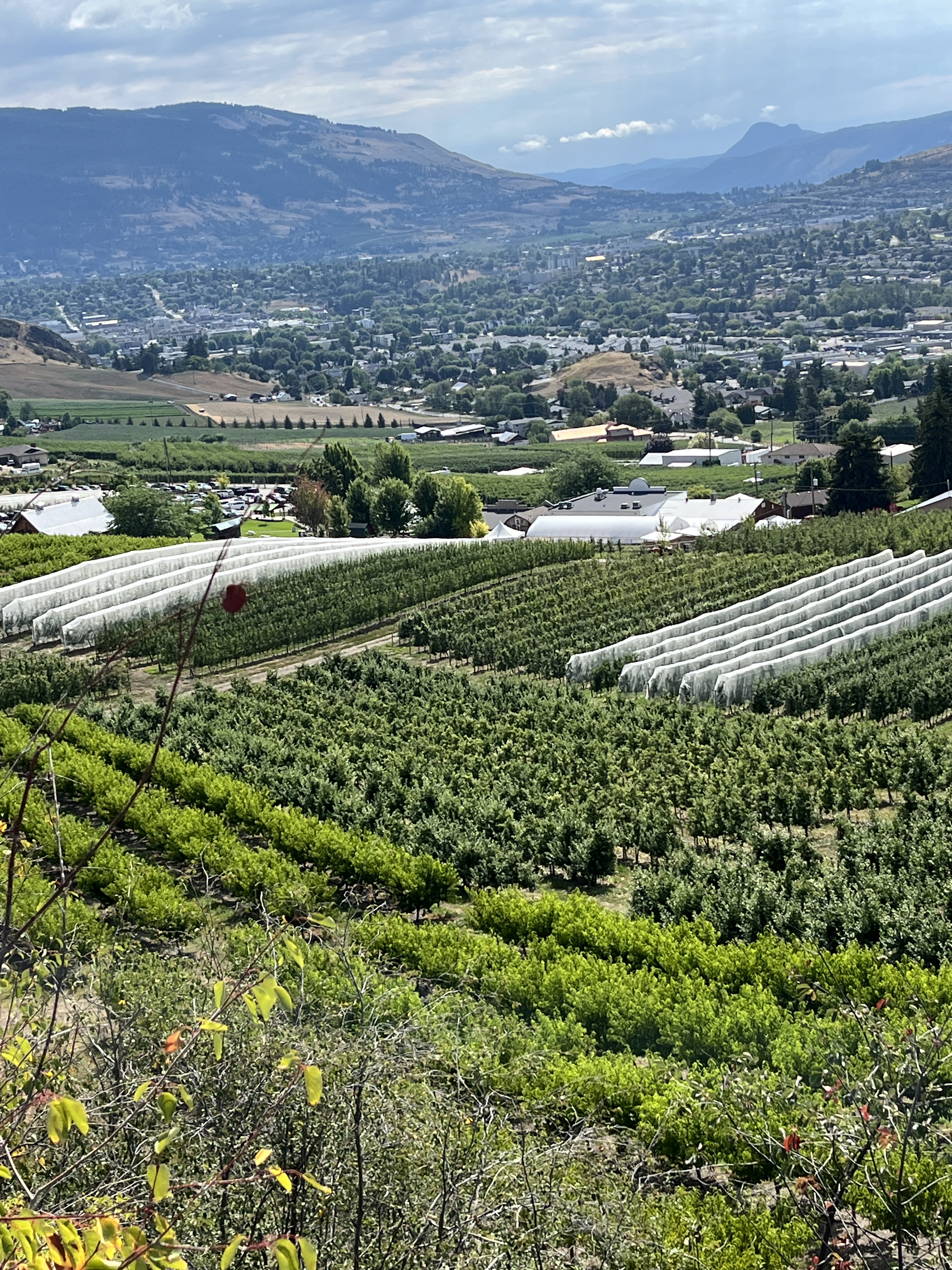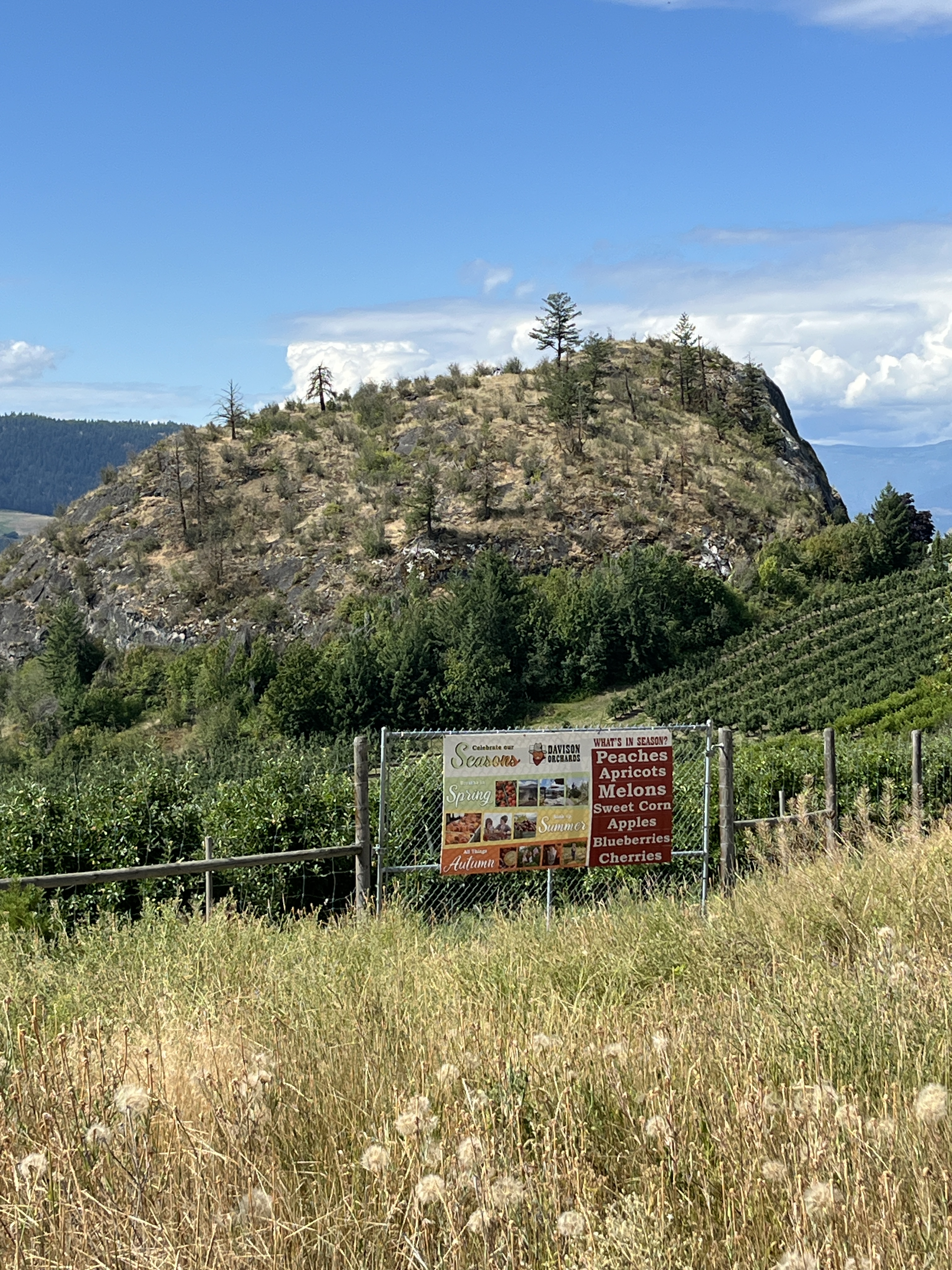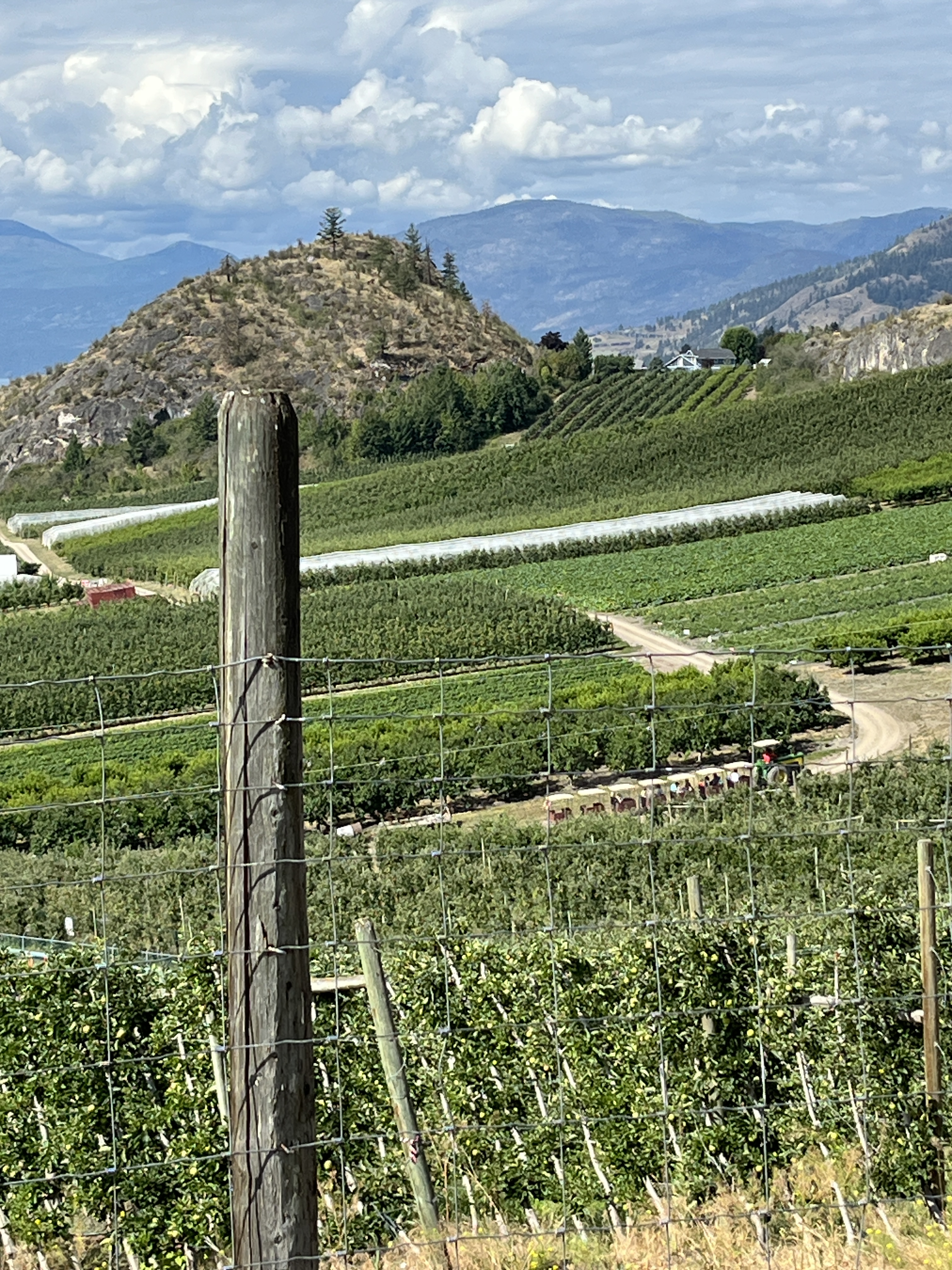 Today we walked above Davidson Orchards. It was an absolutely massive area that, in places, extended to both sides of the trail, although it was not all cultivated. Some of the trees were covered in netting, gotta keep those pesky birds away from that fruit. Although we were quite far away we could see the tractor pulled train giving tours of the orchard.