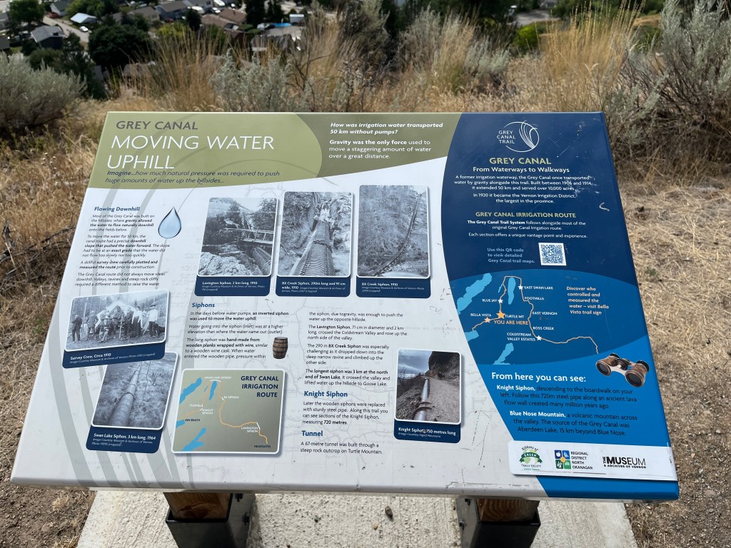 My walking buddy and I have been walking sections of the Grey Canal Trail for the last several mornings. According to google, the Grey Canal area was part of a 50 kilometer gravity fed irrigation system, built between 1906 -1914. This was quite an accomplishment and supplied water to over 20, 000 acres.