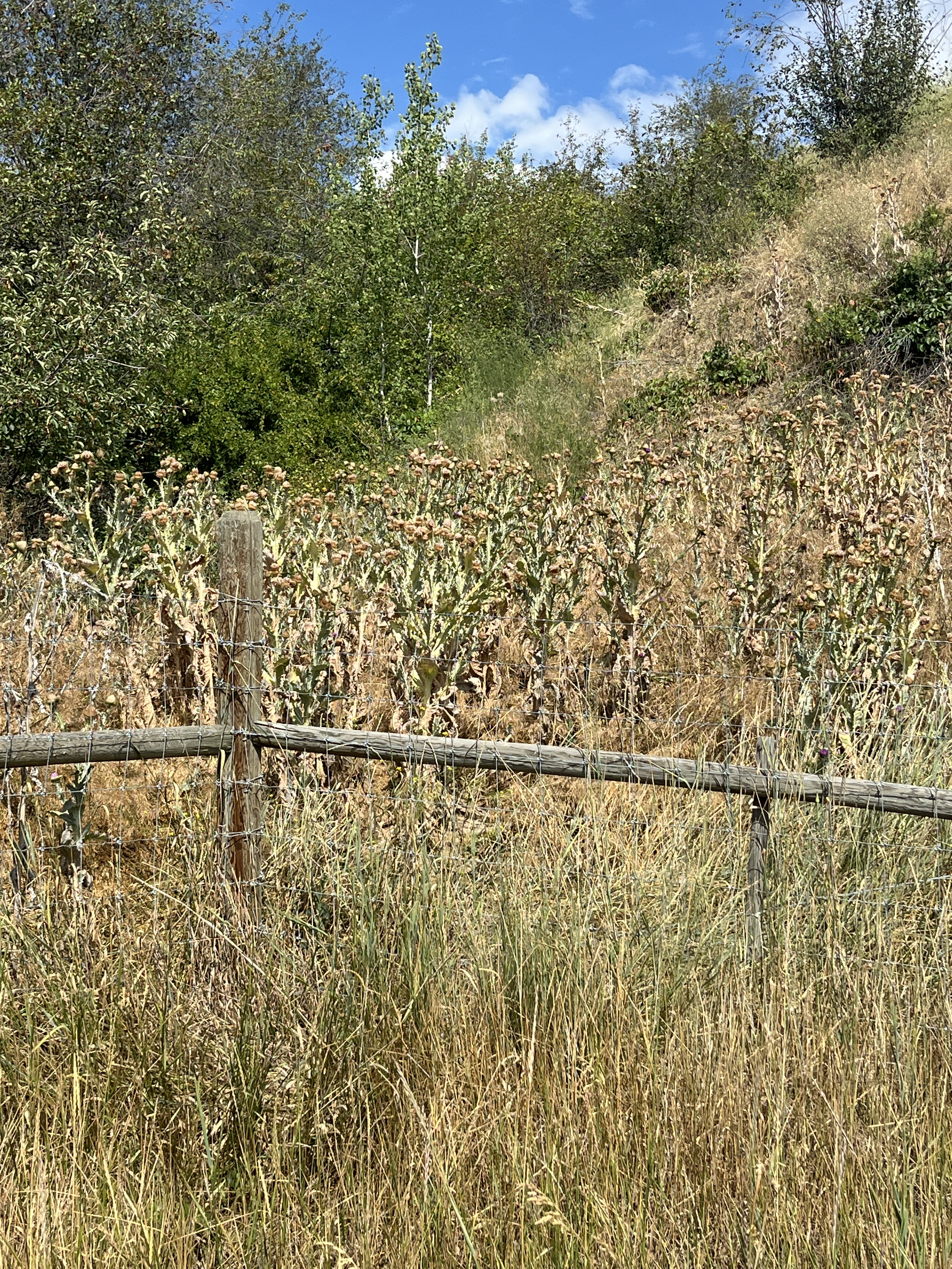 There was lots of sage, which although smells good, I hear is terrible for allergies. There were no thistles on the path, but on the other side of the fence there were fields of them! At one point we saw workers cutting the heads off and bagging them.