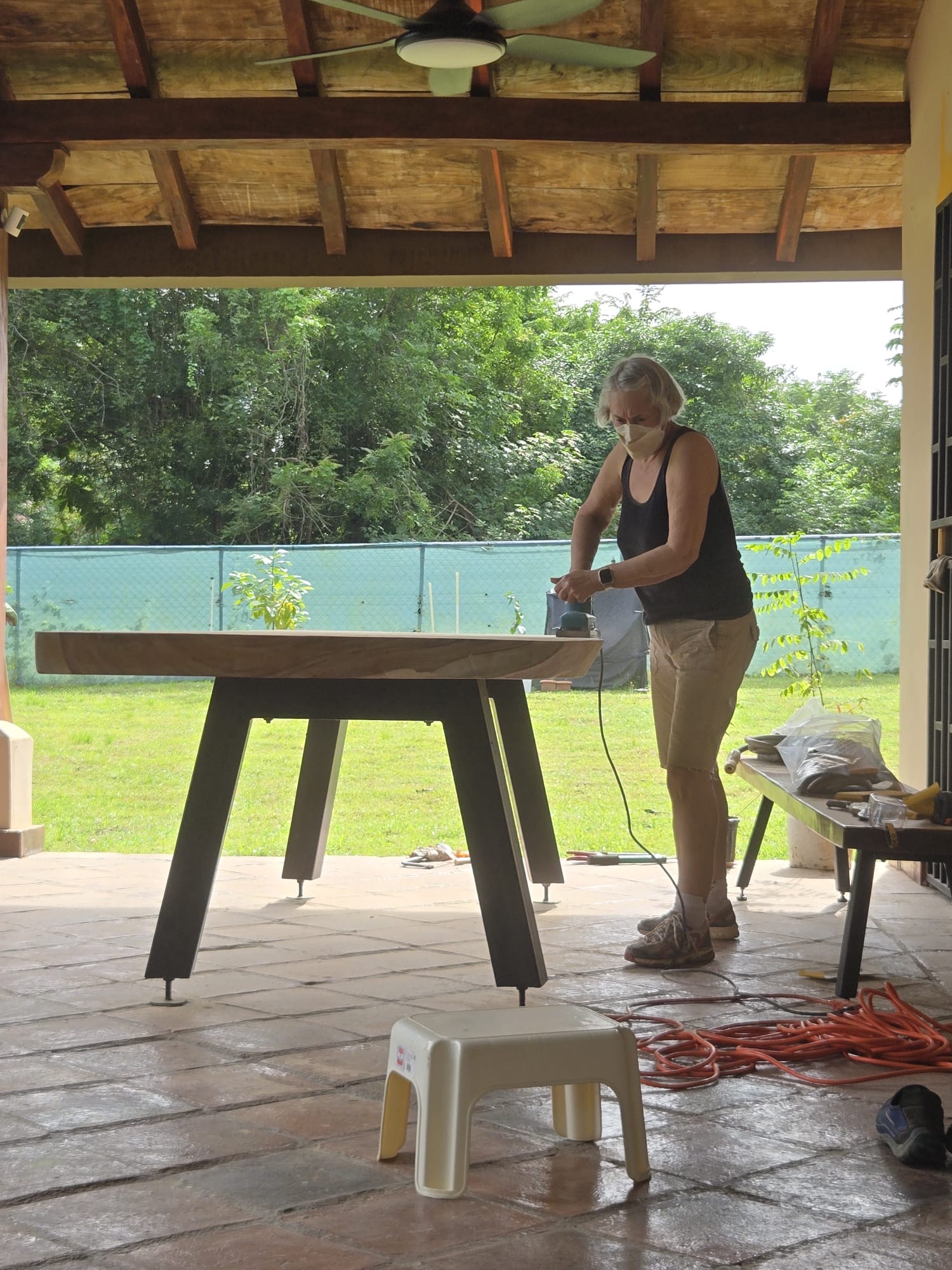 Before Daryl came home last spring, the table top and base were delivered. He put the two pieces together, wrapped it up and left it on the deck to be completed after we arrived back in Pedasi this fall.