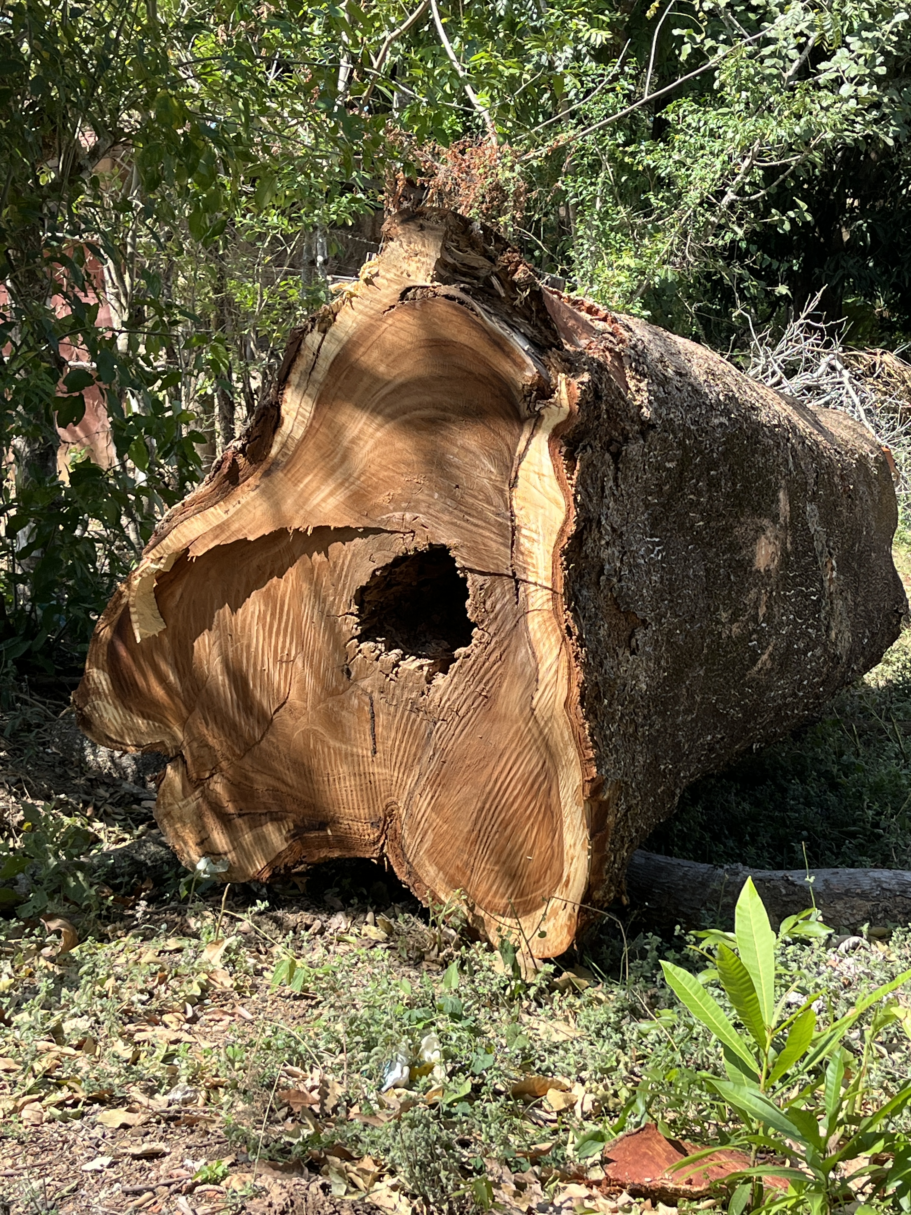 It made some very nice slabs of wood. Although it did wreck the fence when it fell down. The slabs of wood were so heavy a fork lift had to be used to move them.