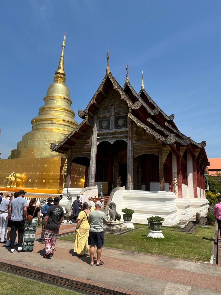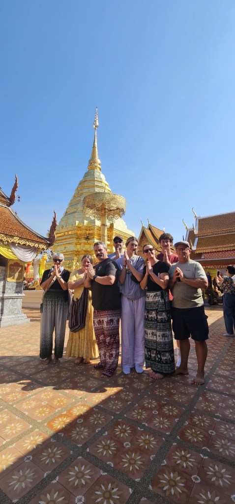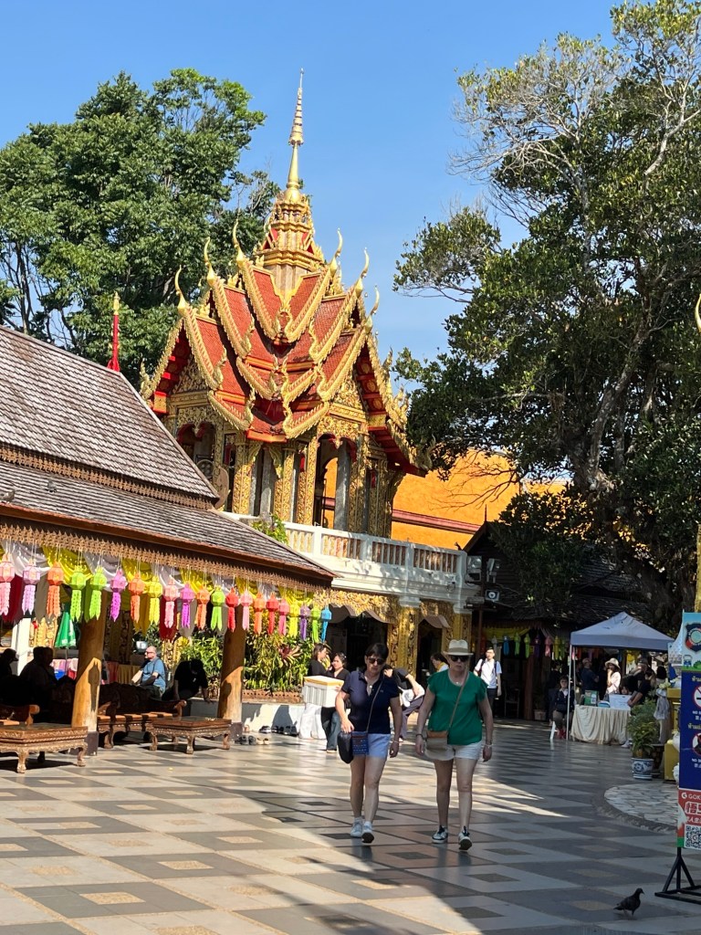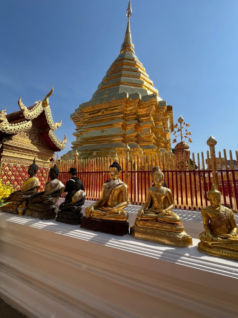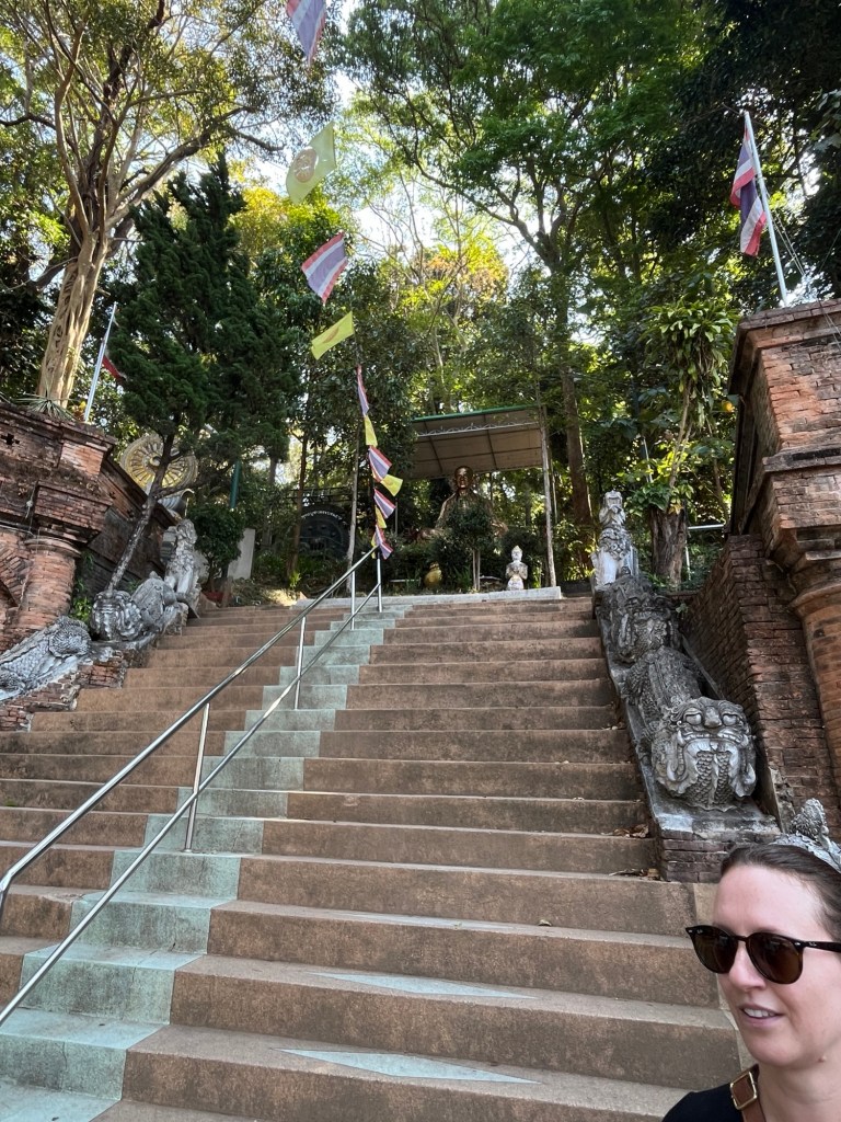 We have taken some incredible temple tours. Today the first temple was about an hour from the hotel, giving us a chance to see a bit of Chiang Mai. After driving up the side of a mountain, we took a gondola to the top.